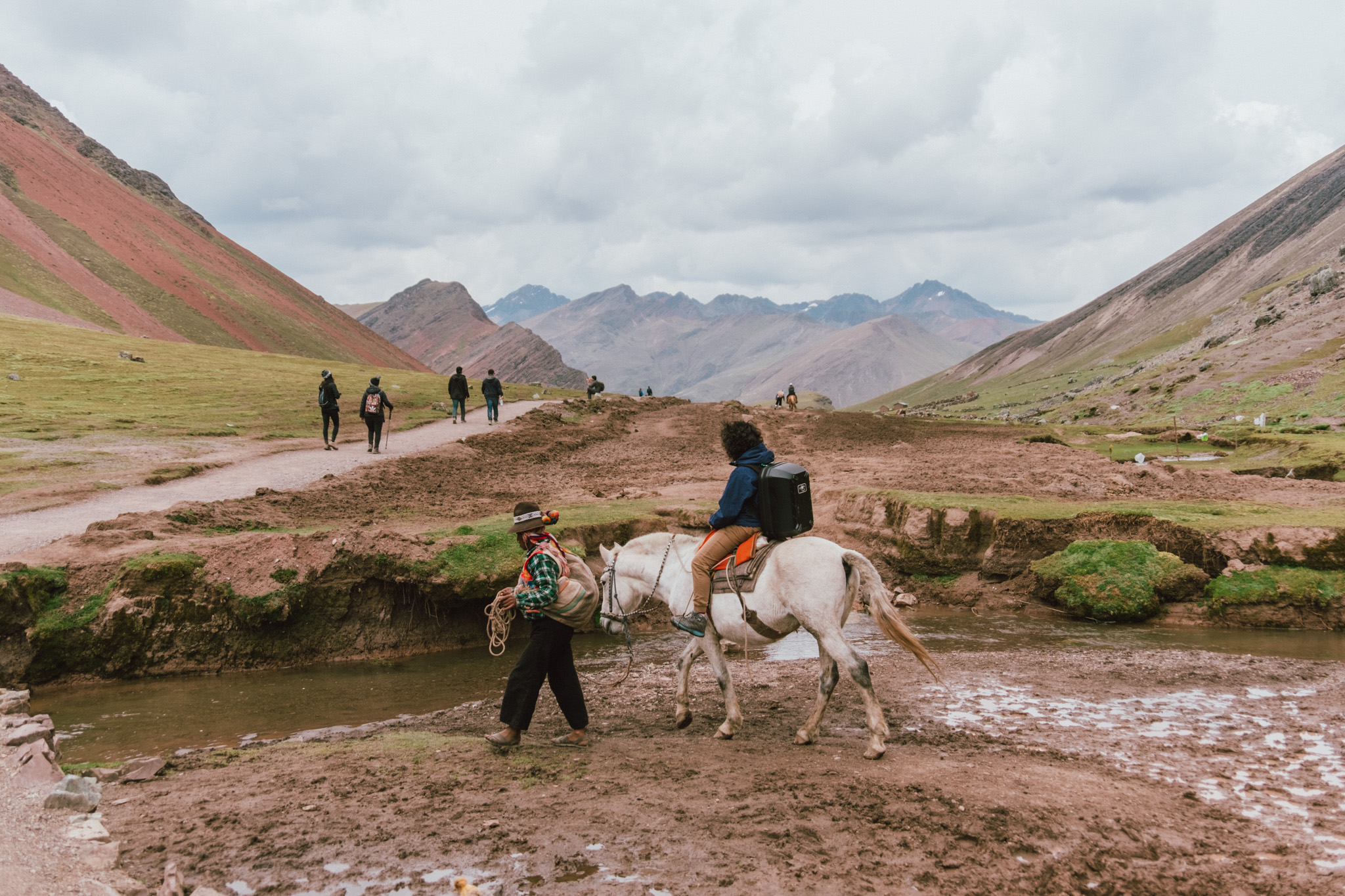 ซึ่งพอนั่งบนหลังม้าชิวๆ ไปจนเกือบถึงตีนเขาสายรุ้ง ม้าก็จะหยุดเดินให้เราเดินขึ้นไปต่อเองเพราะทางค่อนข้างชัน ตลอดเส้นทางบนความสูงขนาดนี้แกจะรู้สึกหายใจลําบาก เหนื่อยหอบ และอาจโดนโรคแพ้ความสูงเข้าจู่โจมทำให้เดินสามก้าวก็ต้องพัก แต่เมื่อมองออกไปที่สองข้างทางแล้วพบว่าเรากําลังถูกโอบล้อมจากธรรมชาติ ข้างๆ กันก็เป็นวิถีชีวิตของชาวพื้นเมืองที่ไม่เคยเห็น และที่จุดหมายปลายทางก็คือเส้นทางที่แสนอัศจรรย์ ทุกอย่างล้วนผลักดันให้เราสามารถไปถึง Rainbow Mountain ได้ในที่สุด แม้จะยากลําบากแต่มันก็คุ้มค่าจริงๆ เพราะบนความสูงสี่พันเมตรเหนือระดับน้ำทะเล ณ เทือกเขาแอนดิสนี้ คือ ยอดเขาสีรุ้ง ภูเขาศักดิ์สิทธิ์ของชาวอินคาอันเกิดจากปรากฏการณ์ธรรมชาติที่แร่ต่างๆ และทรายแดงทับถมสะสมกันเป็นเวลาหลายล้านปี เราสามารถชมอิ่มเอมกับวิวสุดแปลกตาได้แบบ 360 องศา ราวกับเป็นดินแดนแห่งสายลมอันแสนสดชื่นที่ซึ่งจะมอบประสบการณ์อันเกินประเมินค่าให้กับทุกคนที่มาเยือนตั้งแต่ก้าวแรก ณ ปากทางเข้าไปจนถึงก้าวสุดท้ายที่เดินออก
