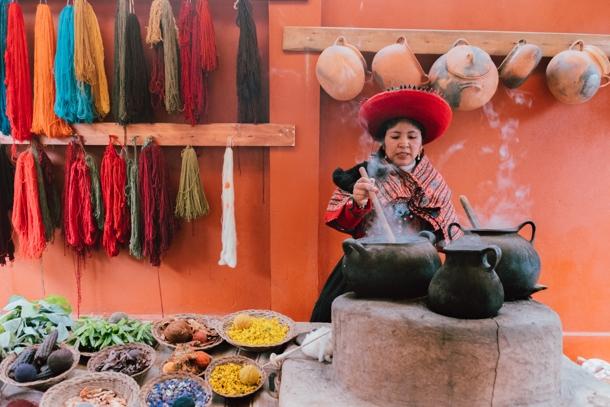เช้าวันที่ 5 เราเริ่มกันที่ Chinchero เมืองหัตถกรรมจินเจโรเมืองชนบทเล็กๆ บนความสูง 3,762 เมตรเหนือระดับนํ้าทะเล ที่หลายคนมองข้ามไปแห่งนี้คือเมืองที่ขึ้นชื่อในเรื่องของการทําหัตถกรรมของชาวเปรู เราจึงสามารถพบเห็นภาพที่ชาวพื้นเมืองกําลังประดิษฐและถักทอผลงาน Handmade ที่เต็มไปด้วยสีสันอยู่ทั่วไป และภายในตลาดเล็กๆ ของที่นี่ นอกจากงานฝีมือแล้วเรายังสามารถหาซื้อผักและผลไม้อีกนิดหน่อยได้จากที่นี่ด้วย แต่สิ่งที่ทําให้เรารู้สึกตื่นเต้นมากกว่าผลงานสีสันสดใสที่ดูสวยงามนี้ก็คือวิธีการซื้อขายของพวกเขาซึ่งยังคงมีการใช้วิธีแลกเปลี่ยนสินค้ากันแทนการใช้เงินในการซื้อสินค้าอยู่ด้วย ถือเป็นวิถีชีวิตที่หาได้อย่างยากยิ่งในทุกวันนี้ เราแวะกันที่ศูนย์หัตถกรรมแห่งหนึ่งของเมือง ซึ่งเมื่อเข้าไปก็จะมีเสิร์ฟชาร้อน แล้วสาธิตว่าการทำผ้าหนึ่งผืนนั้นทำอย่างไร ตั้งแต่เอาขนอัลปากามาย้อมสีด้วยสีธรรมชาติ แล้วก็โชว์พวกวัตถุดิบจากธรรมชาติว่าอะไรทำให้เกิดสีไหน จากนั้นก็สาธิตการทอ แล้วก็ปล่อยให้เราช้อปปิ้งเล็กน้อยก็เป็นอันได้ของฝากติดไม้ติดมือกันทุกคน