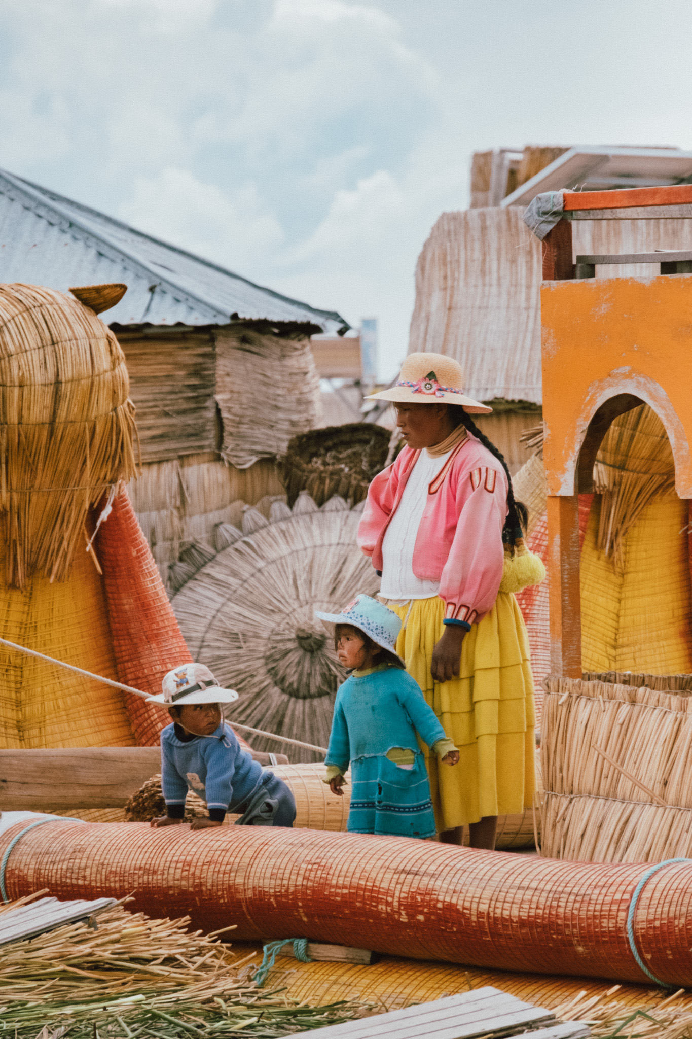 ด้วยความกว้างใหญ่ไพศาลเลยทำให้ทะเลสาบตีตีกากามีที่เที่ยวอยู่หลายแห่ง แต่ด้วยเวลาที่จำกัดเพราะเราต้องไปโบลิเวียต่อเราเลยเลือกที่เที่ยวที่เด่นสุด ป๊อบสุด นั่นก็คือการลงเรือไปยัง Islas flotantes de los Uros (Uros Floating Islands) กลุ่มเกาะลอยน้ำในทะเลสาบ Titicaca ที่มนุษย์สร้างขึ้น โดยการก่อสร้างนั้นเป็นการใช้ต้นโทโทร่าที่มีอยู่ทั่วทะเลสาบมายึดโยงกันไว้ด้วยเชือกและผูกไว้กับไม้ที่ปักอยู่บนพื้นของทะเลสาบ ซึ่งชาวอูรอสจะต้องซ่อมแซมเกาะอยู่ตลอดเวลาเพราะส่วนที่อยู่ใต้นํ้าจะถูกกัดเซาะและเน่าเปื่อยไปเรื่อยๆ จะบอกว่าสิ่งก่อนสร้างที่เราเห็นมันน่ารักสดใสจนดูเหมือนของเล่นมากๆ แต่มันก็คือที่อยู่จริงๆ อ่ะแก การล่องเรือบนทะเลสาบแห่งนี้จึงทําให้เราได้ชื่นชมทั้งผลงานของธรรมชาติ ผลงานของมนุษย์ และวิถีชีวิตความเป็นอยู่ รวมถึง ภูมิปัญญาของชาวพื้นเมืองที่สามารถดํารงชีวิตอยู่บนผืนนํ้าได้อย่างปกติสุขแถมยังน่ารักสดใส เหมือนหลุดมาจากอนิเมชั่นยังไงยังงั้น ยิ่งทำให้เราตื่นตาตื่นใจกับเปรูหนักขึ้นไปกว่าเดิมอีก