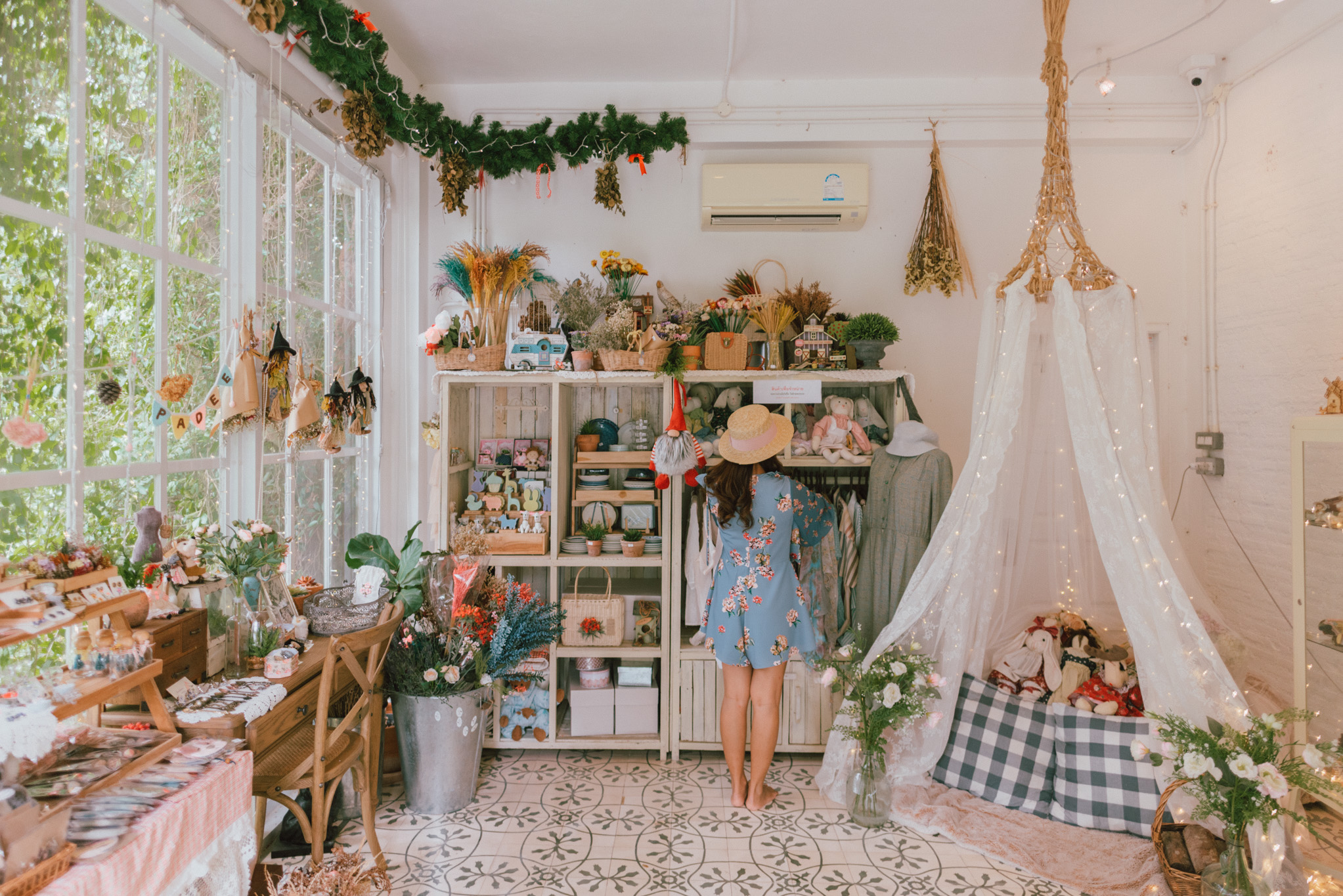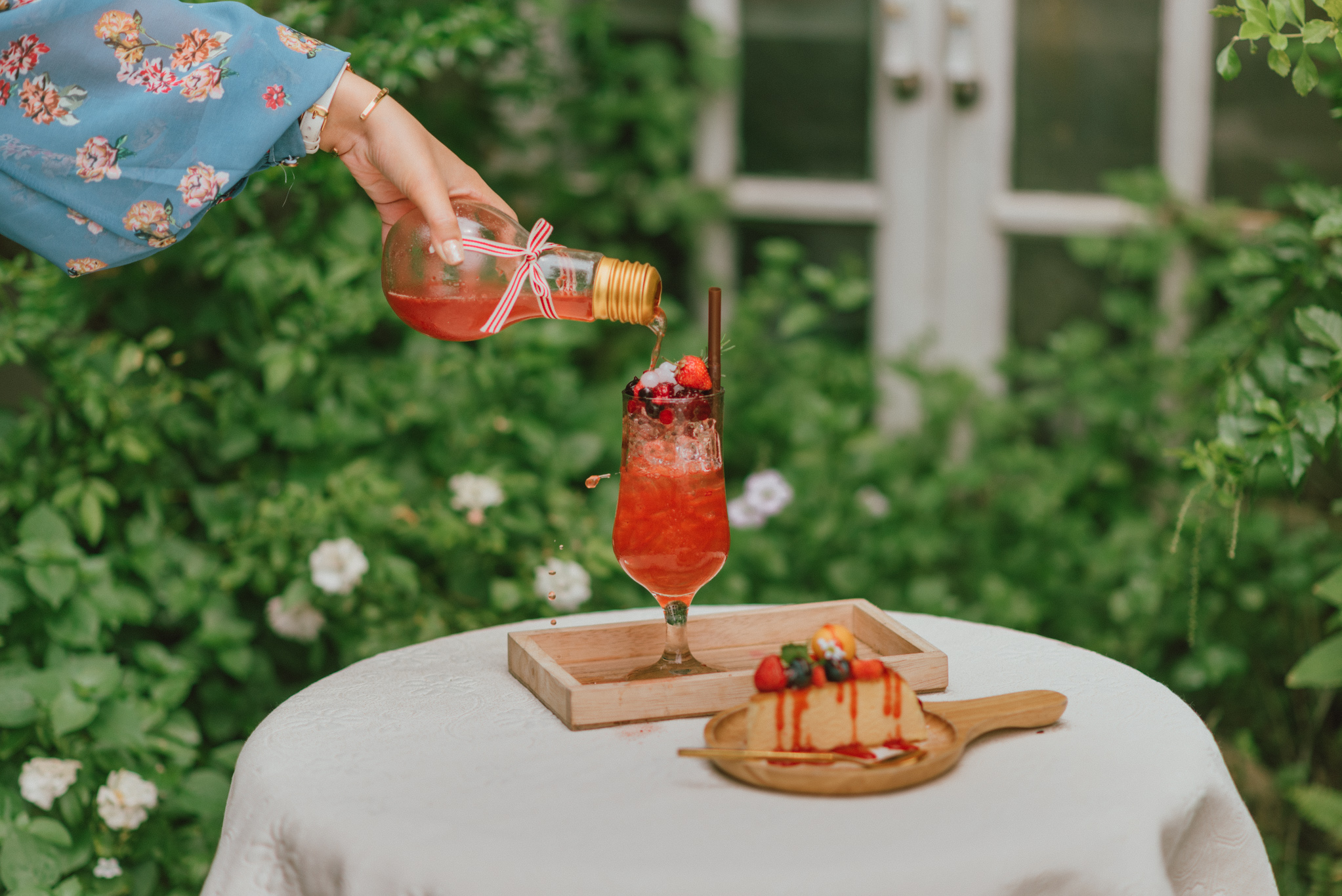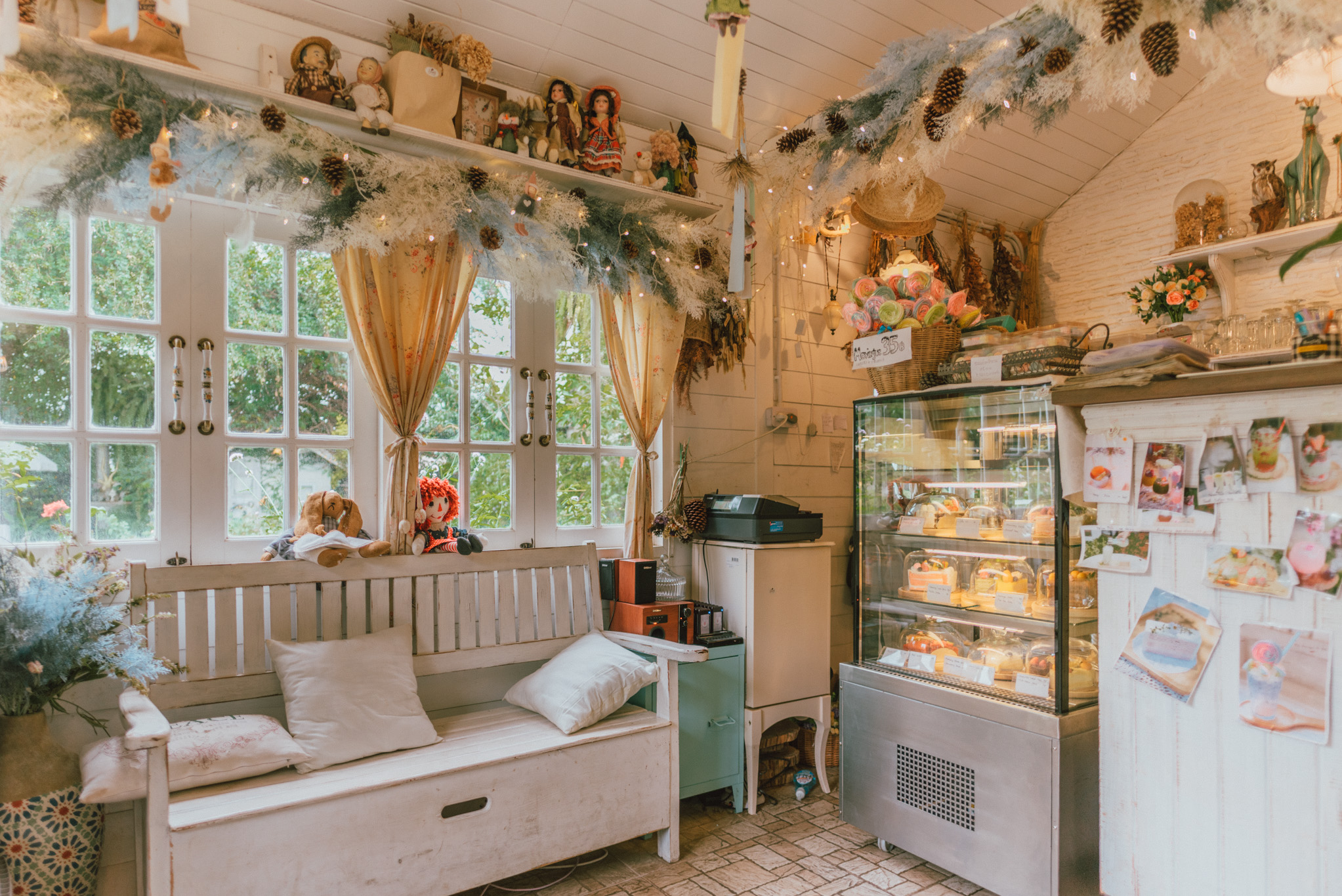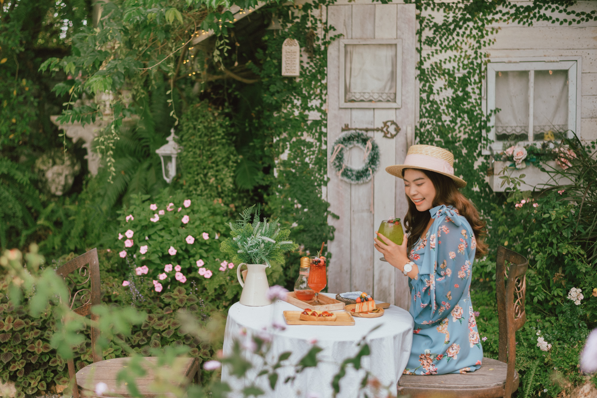 หมุนตัว 185 องศา พร้อมรัวชัตเตอร์แบบไม่ยั้งไปแล้ว ก็ได้เวลาเดินสวยๆ เลิศๆ ไปสั่งขนมนมเนยมาทาน ซึ่งเมนูของร้านนี้จะเน้นเป็นขนมโฮมเมดทำด้วยใจ เหมาะกับสายเฮลตี้ที่ชอบทานเครื่องดื่มจากน้ำผลไม้นานาชนิด ตกแต่งด้วยดอกไม้ปลอดสารพิษจากในสวน เสิร์ฟมาพร้อมตะกร้าสานคงคอนเซ็ปความวินเทจไว้อย่างลงตัว มาที่นี่รับรองได้ว่าแกจะต้องกลับไปพร้อมรอยยิ้มแน่นอน