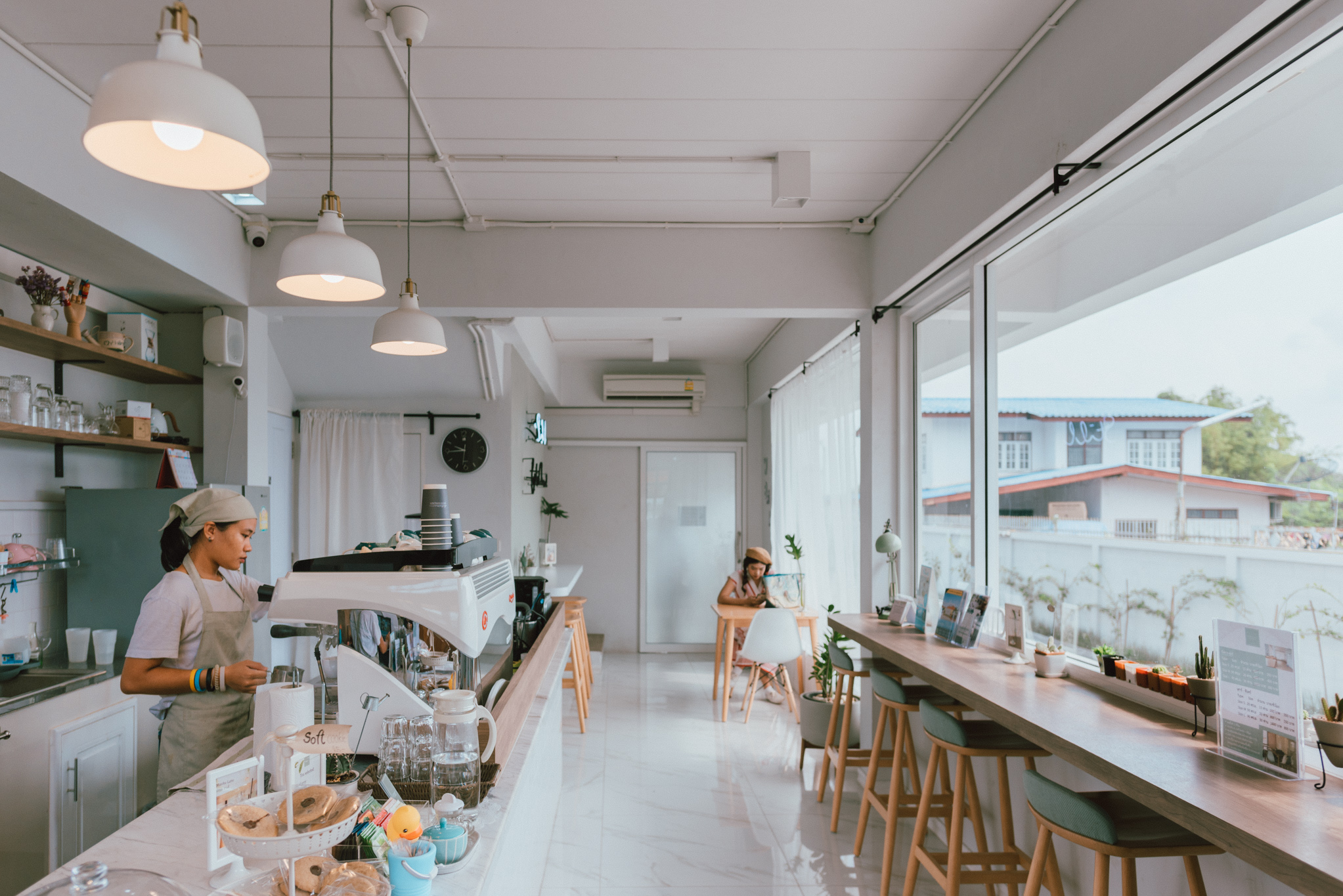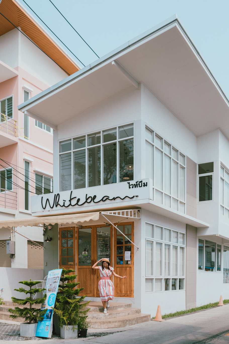 เช้าวันที่สองของทริป พอเช็คเอาท์ออกจากที่พัก เราก็ขับรถมุ่งหน้าไปยังโลเคชั่นที่จะทำให้สายคาเฟ่ทั้งหลายต้องหลงรัก Whitebeam café& Co-working space เป็นคาเฟ่ที่แค่เห็นแว๊บแรกก็เหมือนหลุดออกมาจาก Pinterest ยังไงยังงั้นเลยแก ร้านออกแบบสไตล์มินิมอลคุมโทนด้วยสีขาวให้ความรู้สึกสบายตา เพิ่มความอบอุ่นด้วยโทนสีไม้จากเฟอร์นิเจอร์ต่างๆ ภายในมี 2 ชั้น มีหลายมุมให้เลือกนั่ง ชั้นบนเป็น Co-working Space ที่เหมาะกับการมาชิลทำงาน ทานขนม จิบกาแฟ เม้ามอยหอยสังข์เป็นอย่างยิ่ง ที่สำคัญร้านเพิ่งเปิดได้ไม่นาน ถ้าแกได้มาเช็กอินถ่ายรูปอัพลงโซเชียลก่อนใครละก็รับรองว่ายอดไลก์ต้องถล่มทลายแน่นอน