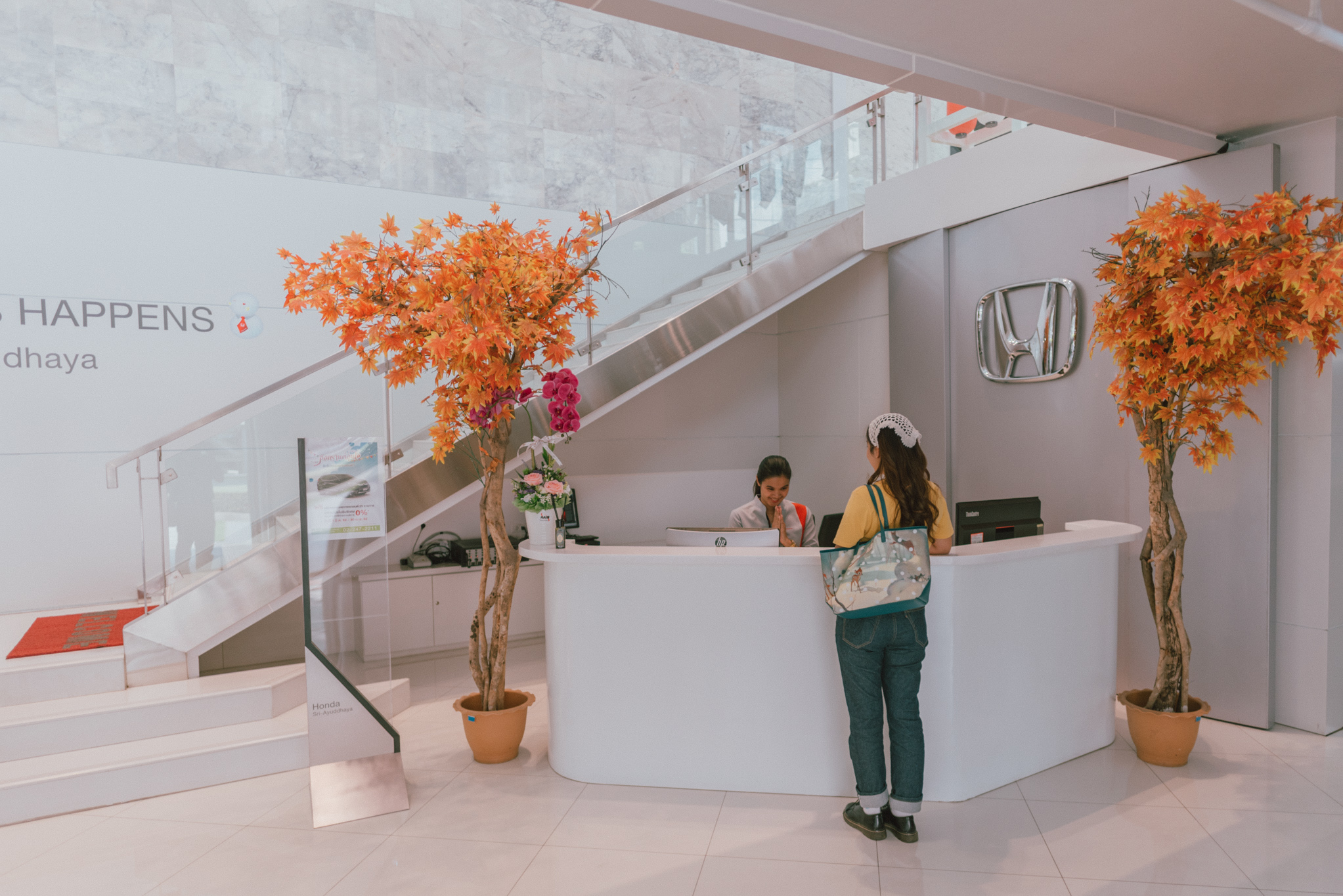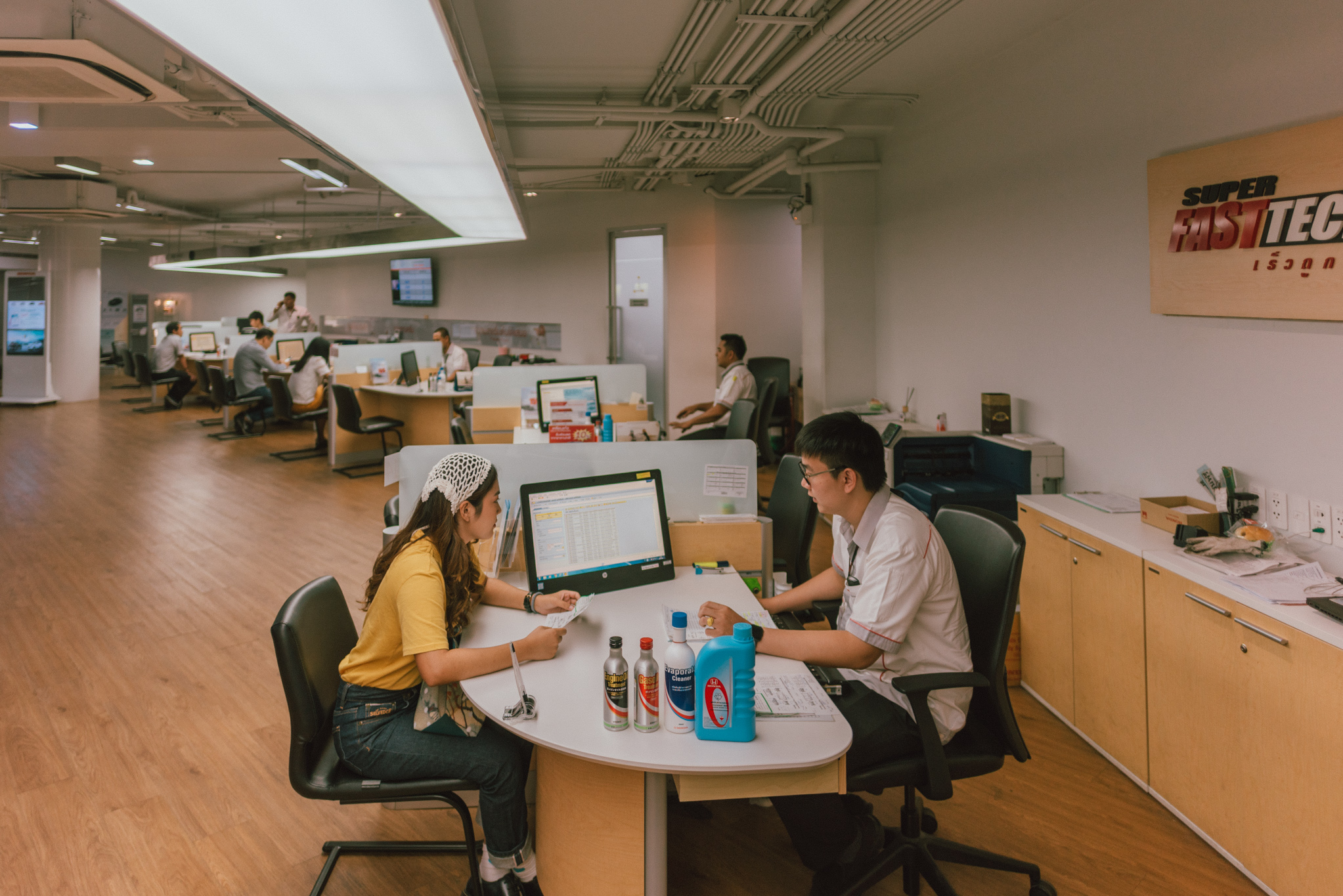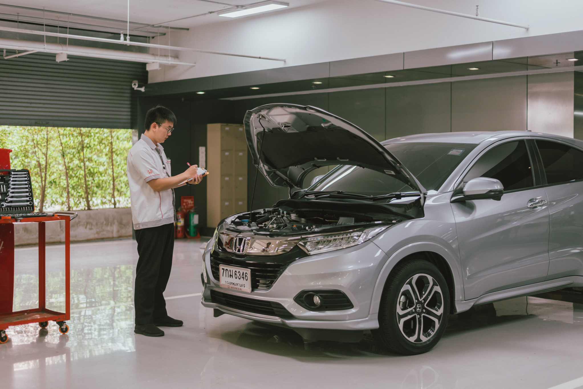 พอเลี้ยวรถเข้ามาที่ศูนย์บริการฮอนด้าเรียบร้อย ก็จะมีพนักงานมายืนยิ้มต้อนรับ จากนั้นก็อธิบายรายละเอียดต่างๆ ที่จะได้รับการตรวจสภาพครั้งนี้ให้เราฟัง ซึ่งพอฟังจบก็ปล่อยให้เป็นหน้าที่ของช่างไป ส่วนเราก็แค่เดินสวยๆ มานั่งตากแอร์ จิบเครื่องดื่มเย็นชิลๆ รอไป สักพักพนักงานคนดีคนเดิมก็กลับมาแจ้งว่ารถพร้อมแล้ว ตรวจเช็กทุกอย่างอย่างดีละเอียดยิบ สามารถเอาไปขับบนท้องถนนได้อย่างปลอดภัยหายห่วงเลยจ้า บอกเลยว่า Honda เค้าใส่ใจเรื่องการตรวจเช็กดูแล และให้คำแนะนำดีมาก รู้สึกเลยว่าเราเป็นคนสำคัญของเค้าจริงๆ อะแก