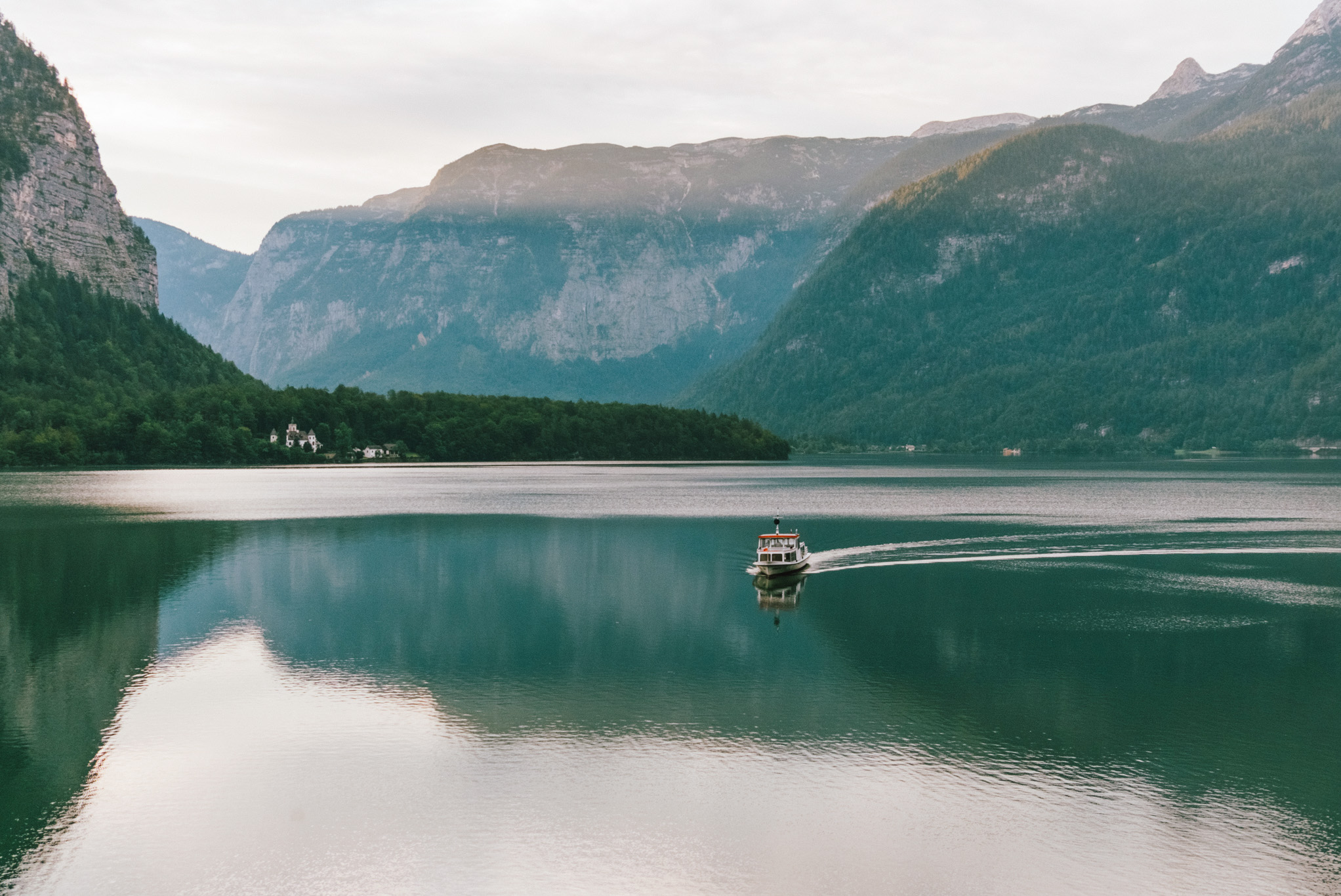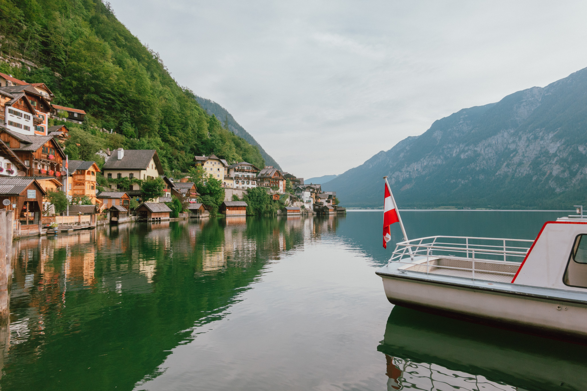 นั่งรถไฟออกจากกรุงเวียนนาเพียง 4 ชั่วโมง เราก็มาหยุดยืนอยู่หน้าท่าเรือที่จะพาเราข้ามฝั่งไปยังหมู่บ้าน Hallstatt ทุกอย่างตรงหน้าตอนนี้คือความธรรมชาติที่แสนจะลงตัว เรือลำใหญ่ดูเล็กลงไปทันทีที่แล่นฝ่าผืนน้ำสีเขียวนิ่งงัน ภาพของภูเขาช่างชัดเจนบนผืนน้ำราวกับกระจก หมู่บ้านอันเงียบสงบที่ริมฝั่งก็แสนโรแมนติก ทิวทัศน์ 2 ข้างทางล้วนปลุกจิตใจและความรู้สึกของเราให้ลิงโลดได้อย่างไม่น่าเชื่อ