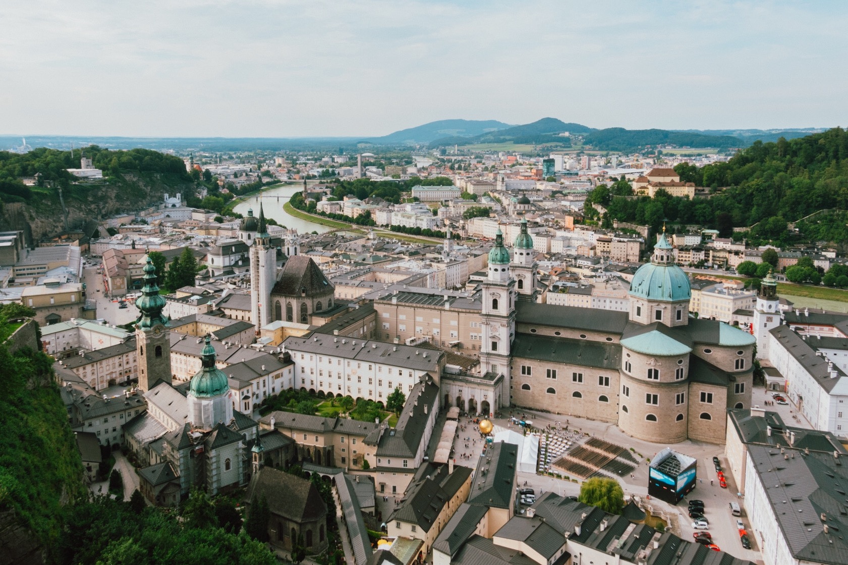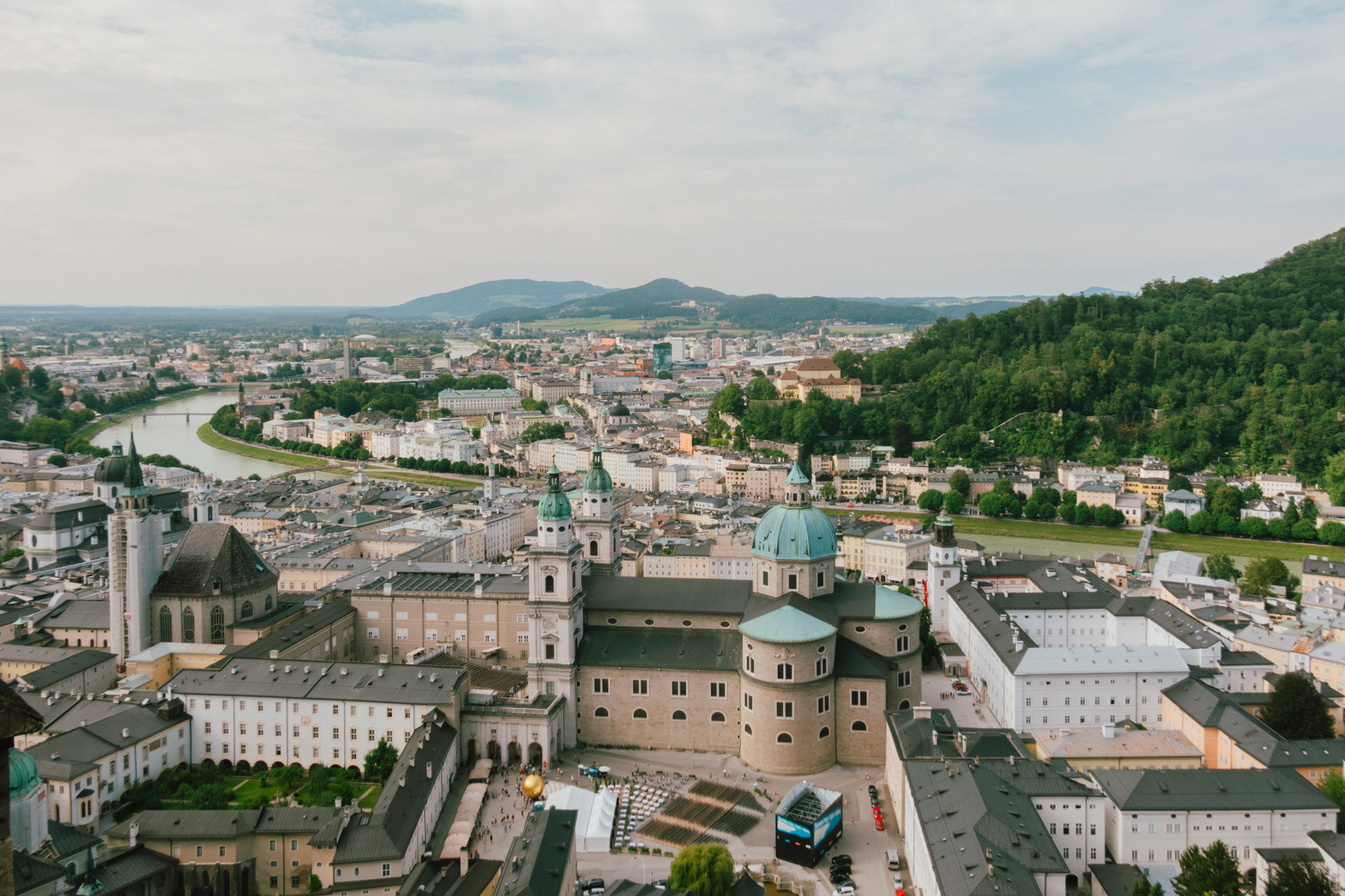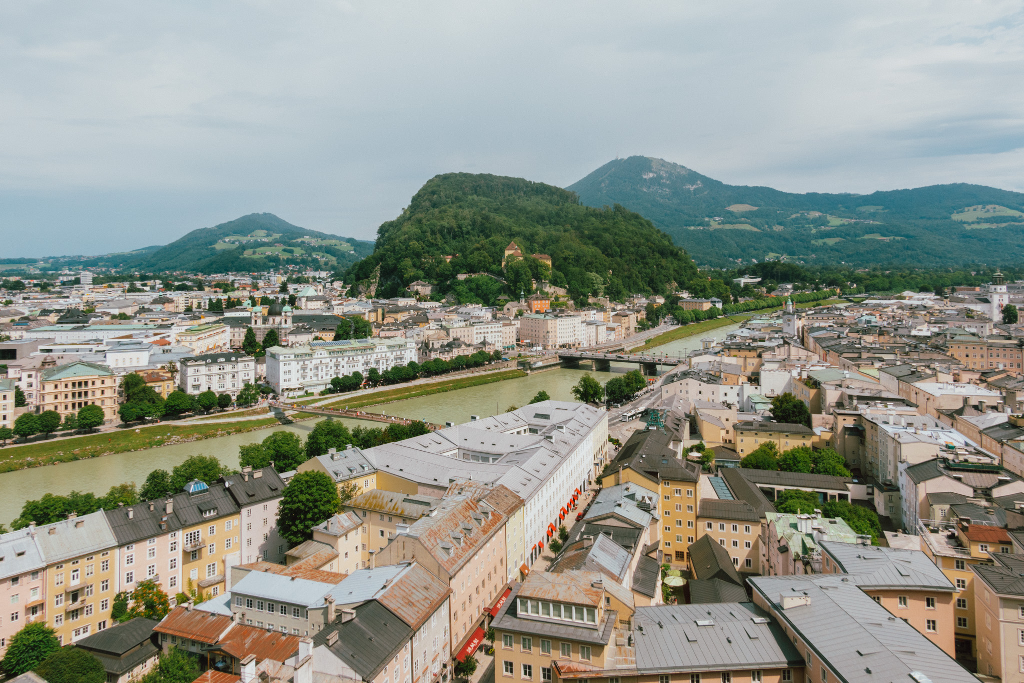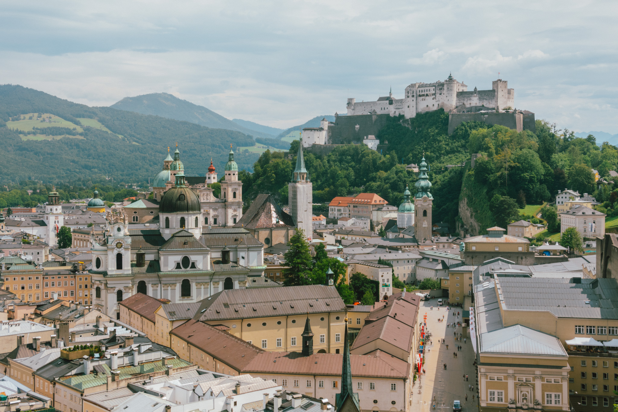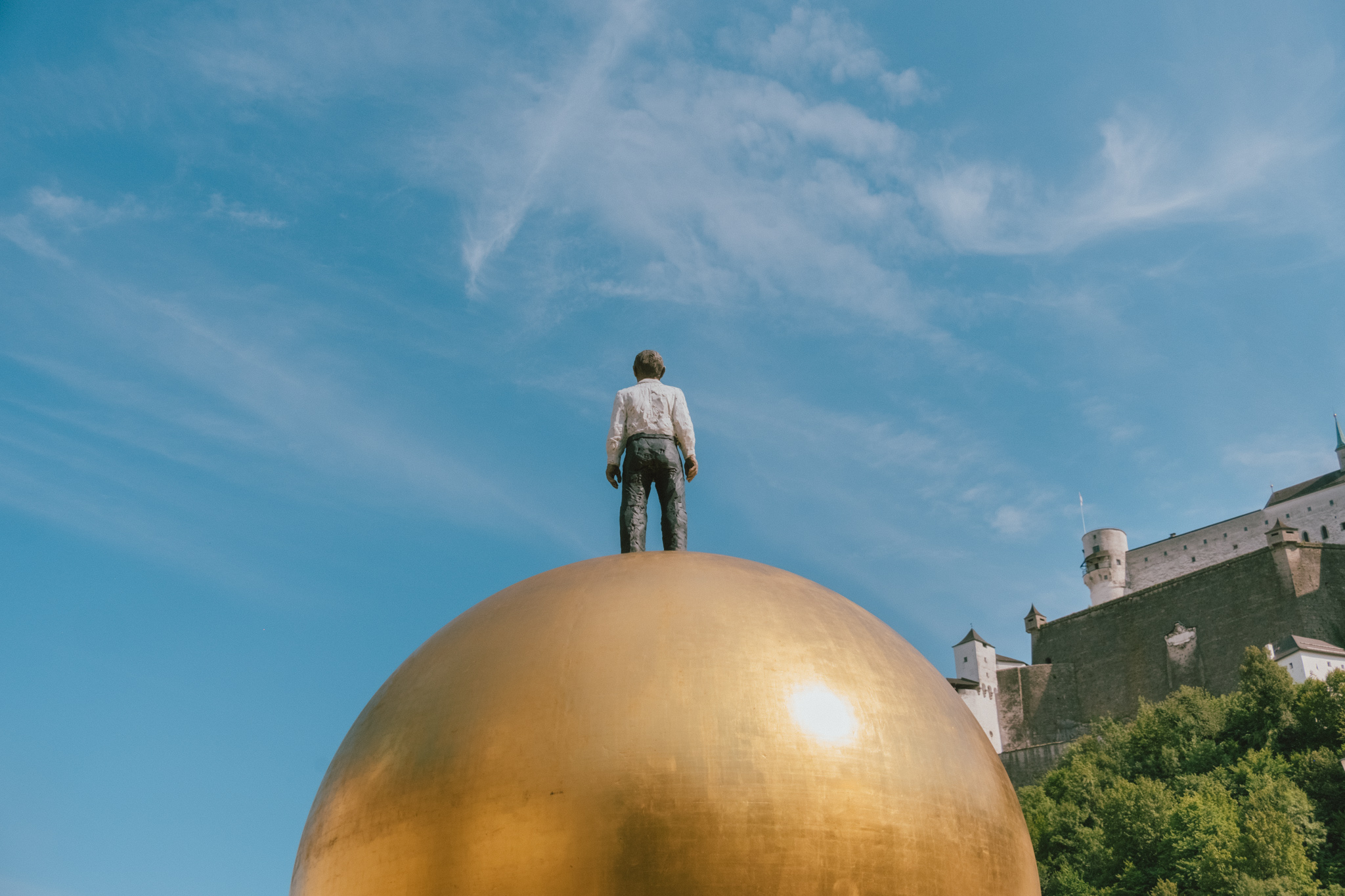 ตัวโน๊ตหมุนวนซ้ำไปซ้ำมา แต่เราก็ยังไม่มีทีท่าว่าจะเบื่อ และแม้ไม่ใช่แฟนเพลงคลาสสิค แต่เรากลับถูกดึงดูดด้วยท่วงทำนองชัดเจน เข้มข้น ขึ้นลงจนรู้ตัวอีกทีก็มาถึง Salzburg ในช่วงเกือบเที่ยง โชคดีที่เวลากลางวันในช่วงซัมเมอร์มอบเวลาเดินทางให้เราเพิ่มขึ้นอีกหลายชั่วโมง ลากยาวได้ถึงสองทุ่มแบบสว่างจ้า ๆ แม้จะใกล้บ่ายคล้อยเราก็สามารถเดินเล่นทอดน่อง ฟังเพลง เก็บแลนด์มาร์คได้จนครบแบบวันเดย์ทริป สำหรับเมืองซาลซ์บูร์กอันแสนสงบนี้คือเมืองที่เต็มไปด้วยจิตวิญญาณแห่งดนตรี เพราะเป็นบ้านเกิดของโมสาร์ท รวมถึงเป็นสถานที่ถ่ายทำภาพยนต์ก้องโลกอย่าง The Sound of Music ชื่อเมืองมีความหมายว่า ปราสาทเกลือ ตามประวัติศาสตร์เดิมที่ชาวเมืองมีอาชีพขายเกลือ และร่ำรวยจนทำให้ที่นี่กลายเป็นเมืองใหญ่อันดับ 4 ของประเทศ