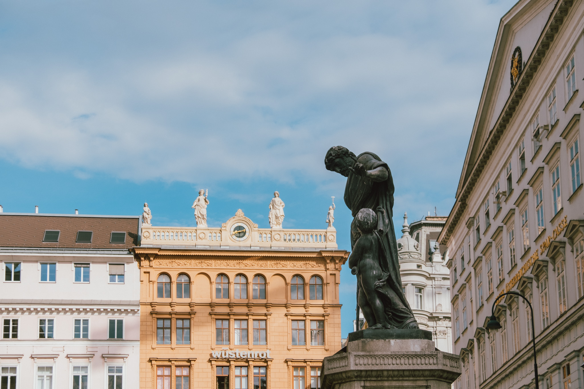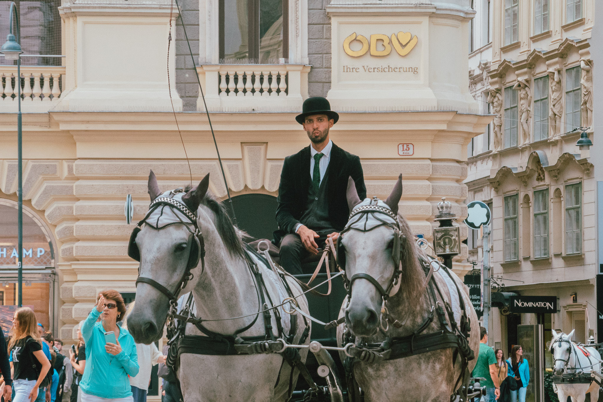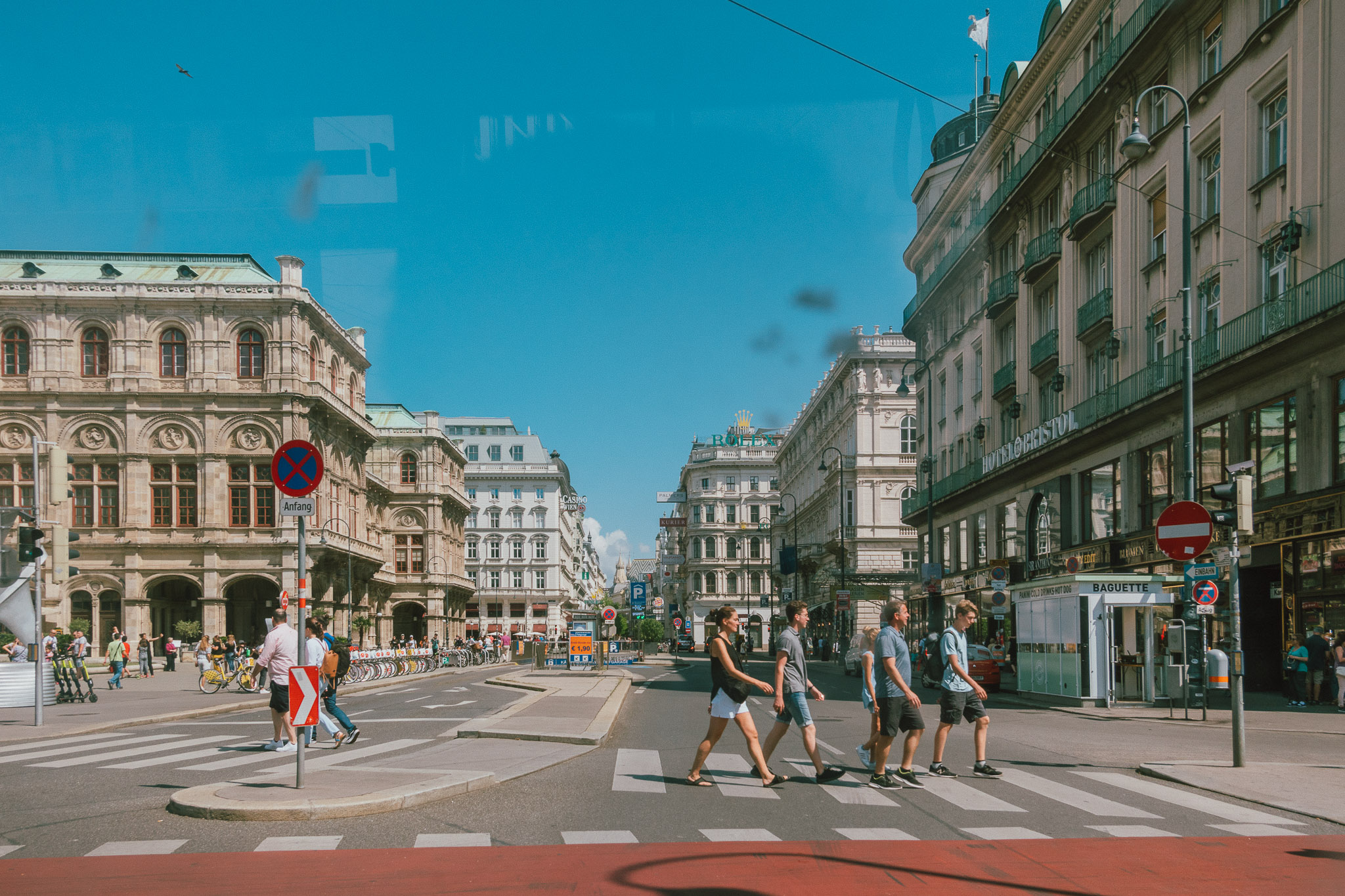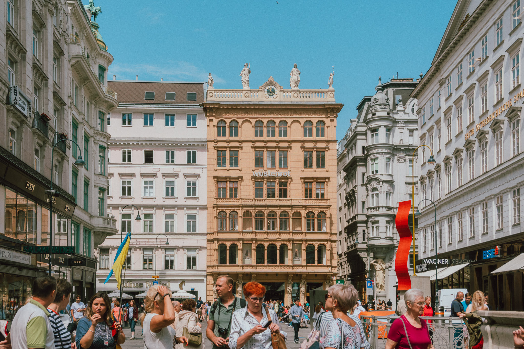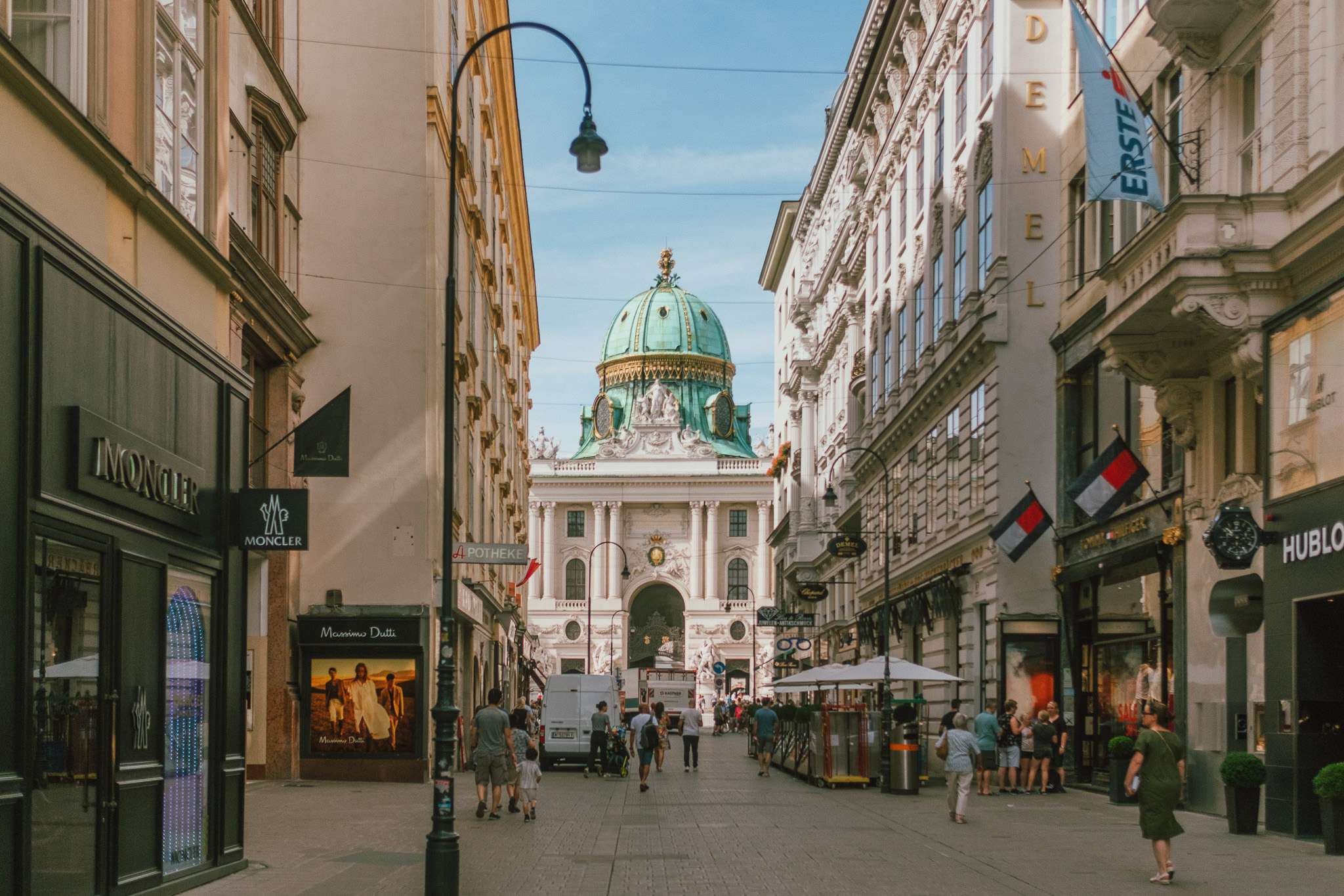 หลังจากโหลดคาเฟ่อีนเข้าสู่กระแสเลือด ร่างกายก็พร้อมที่จะออกมาเดินเล่นรับลมท่ามกลางบรรยากาศสุดคึกคัก ที่มีเสียงเพลงจากเหล่านักดนตรีเปิดหมวกริมถนน เสียงปรบมือของผู้ชม หรือแม้แต่เสียงเกือกม้าที่กดลงไปบนถนนสีเทา ทุกอย่างกำลังเคลื่อนไหว ในขณะที่ชัตเตอร์ของเรากำลังเก็บทุกสิ่งให้หยุดนิ่ง มันเป็นความสวยงามที่ดูธรรมชาติ แต่ก็ดูประดิษฐ์ประดอยด้วยแบ็คกราวนด์ตึกทรงโบราณใหญ่ยักษ์ และแม้ว่าจะอยู่ในช่วงฤดูร้อน แต่อากาศของที่นี่ก็เรียกว่ากำลังสบาย ๆ หากอยากช้อปปิ้งถนน Kärntner และ Graben ก็พร้อมดูดทรัพย์ของพวกแกจนเสี่ยงล้มละลาย แต่หากอยากชมผลงานศิลปะโบราณที่มุมถนนของถนนสองเส้นนี้ก็ยังมี Stock-im-Eisen (ท่อนไม้ในเหล็ก) ซึ่งก็คือท่อนไม้ที่ถูกตอกด้วยตะปูหลาย 100 ตัวตั้งโชว์อยู่