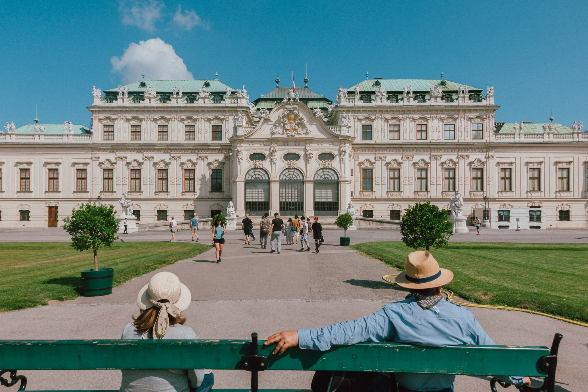 โลเคชั่นปิดท้ายแบบเวอร์วังอลังการ ใช่เราจะพาไปเที่ยวอีกหนึ่งวังที่สวยงามนั่นก็คือ Belvedere Palace หรือ พระราชวัง “เบลเวเดียร์” อดีตพระราชวังฤดูร้อนสไตล์บาโรกที่มีอายุยาวนานมาตั้งแต่ศตวรรษที่ 18 ปัจจุบันถูกปรับเปลี่ยนให้กลายเป็นผลิตภัณฑ์ศิลปะ เพื่อจัดแสดงผลงานศิลปะที่ดีที่สุดของกรุงเวียนนา ที่เราสามารถชื่นชมผลงานศิลปะระดับโลก ภายใต้บรรยากาศแบบพระราชวังที่ถูกแบ่งเป็นสองส่วน คือพระราชวังส่วนบนพื้นที่จัดแสดงภาพเขียนออสเตรียนแกลอรี่ ไม่ว่าจะเป็น The Kiss และ Judith and the Head of Holofernes ของ Gustav Klimt (กุสตาฟ คลิมท์) และพระราชวังส่วนล่างพื้นที่จัดแสดงศิลปะออสเตรียตั้งแต่ยุคกลางจนถึงยุคปัจจุบัน ทำให้มันรั้งตำแหน่งพิพิธภัณฑ์ศิลปะที่มีชื่อเสียงมากที่สุดแห่งหนึ่งของโลกเอาไว้ได้