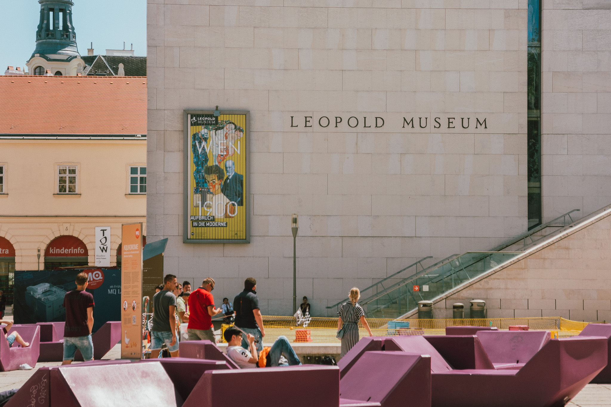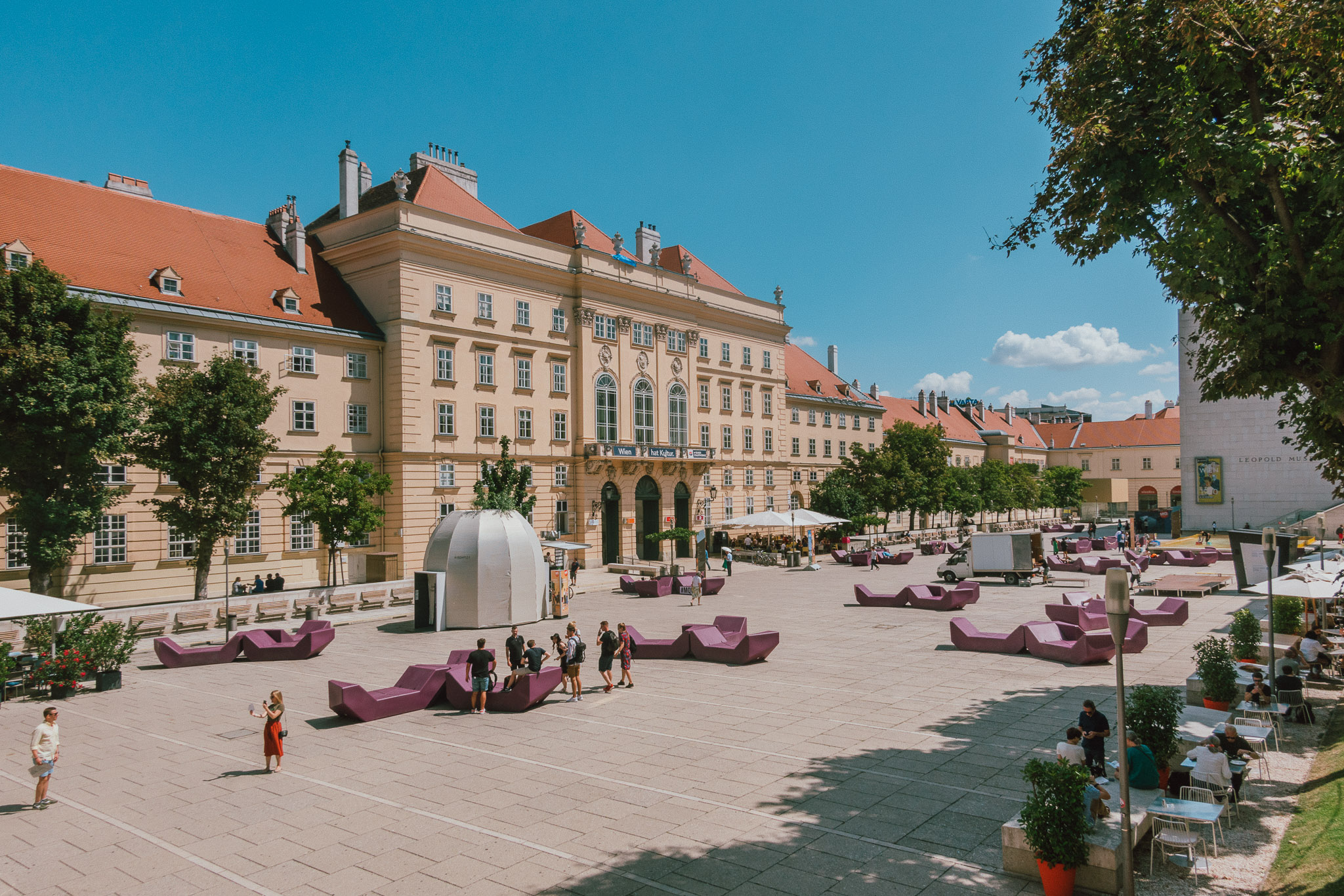 ที่ถัดไปเราก็ยังคงอยู่กับสถานที่รวบรวมศิลปะและวัฒนธรรมของเมืองไว้อย่างยอดเยี่ยมนั่นก็คือ MuseumQuartier หนึ่งในศูนย์วัฒนธรรมที่ใหญ่ที่สุดในโลก บนพื้นที่กว่า 60,000 ตารางเมตรนี้ คือศูนย์รวมของมิวเซียม ร้านค้า และสถานที่ท่องเที่ยวกว่า 70 แห่ง อดีตโรงม้าของพระราชวังหลวงที่เปลี่ยนแปลงมาเป็นสถานที่พักผ่อนหย่อนใจของชาวเมือง ไม่ว่าแกจะอยากมานั่งคุยเล่นชิว ๆ กับเพื่อน อาบแดดเพิ่มผิวสีแทน แสวงหาความรู้อันไม่จำกัด เสพศิลปะหลากหลายแขนง ทั้งแบบถาวรและแบบหมุนเวียนแกก็สามารถมาที่นี่ทีเดียวจบ
