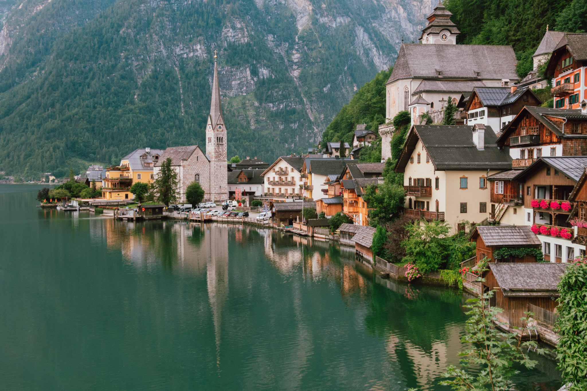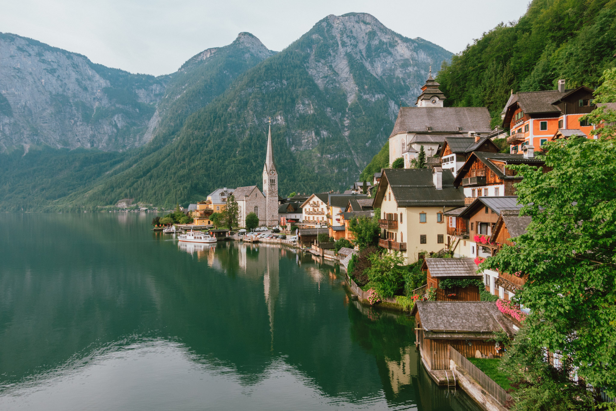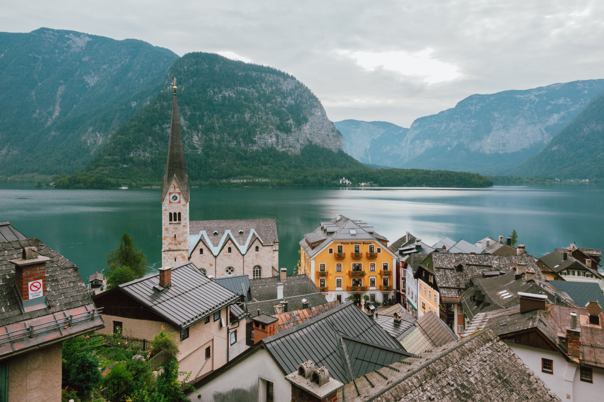 Hallstatt คือหมู่บ้านที่มีเทือกเขาเป็นฉากหลัง มีทะเลสาปอัลล์ตัทท์เทอร์ซีอยู่เบื้องหน้า ที่นี่จึงกลายเป็นเมืองท่องเที่ยวที่คนนิยมมาเช็คอินกันทั้งปีไม่ขาดสาย และก่อนที่พระอาทิตย์จะลอยลับไปเราก็มาถึงตัวเมืองแบบพอดิบพอดี ทำให้เราพอมีเวลาเดินเล่นได้ทั่วเมืองสีพาสเทลแห่งนี้ บอกตรง ๆ แบบไม่อวยว่าที่นี่ทุกอย่างคือสวยเพอร์เฟก น่ารักน่าพูดเสียงสองใส่ไปทั้งเมือง ทั้งโบสถ์ ทั้งจตุรัสกลางเมือง ทั้งจุดชมวิว เรียกว่ามีครบแบบที่เมืองน่ารักเมืองหนึ่งควรจะมี เนี่ย ๆ ละจะไม่ให้หลงรักได้ไงจริงมั้ยล่ะ