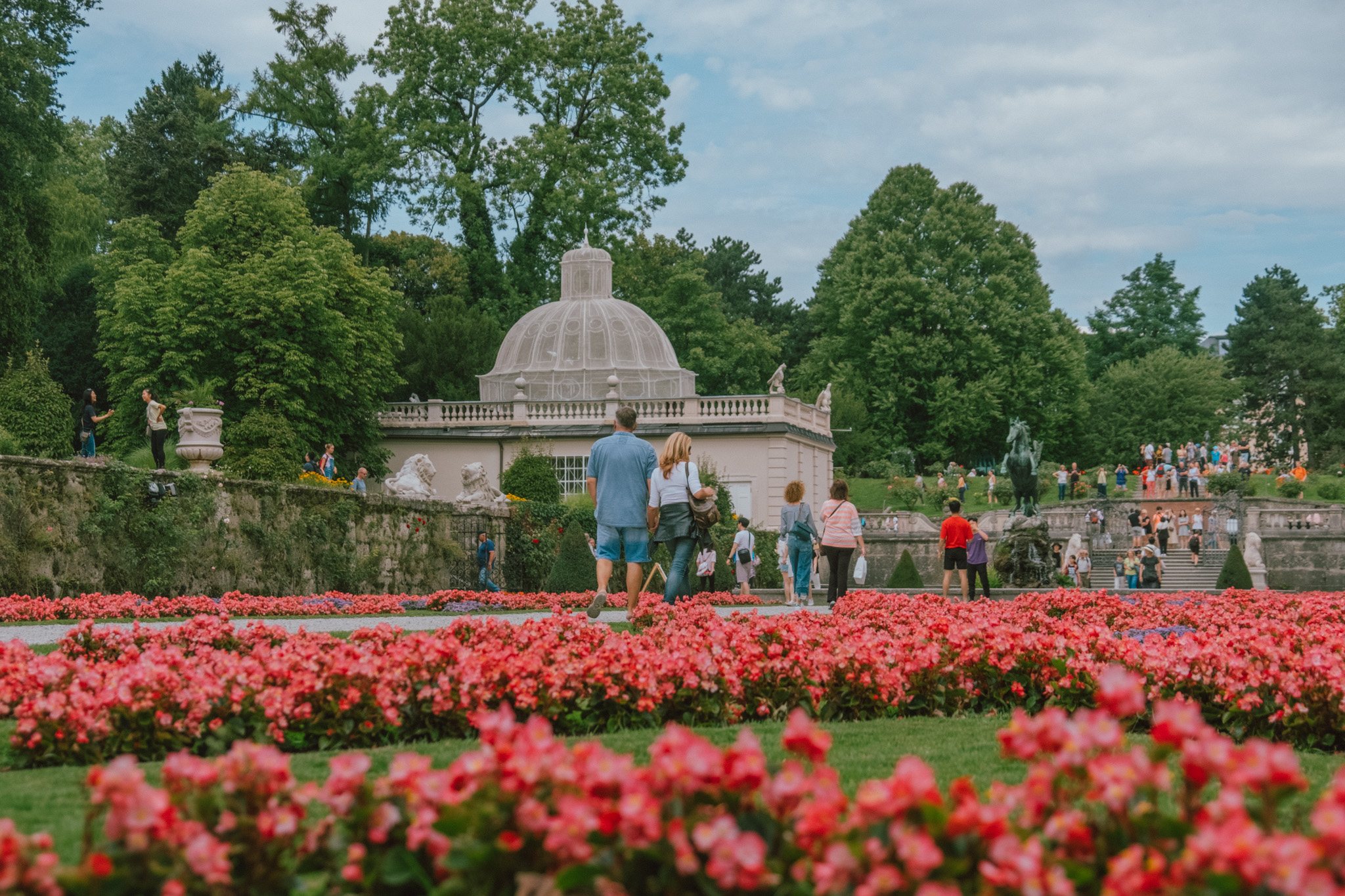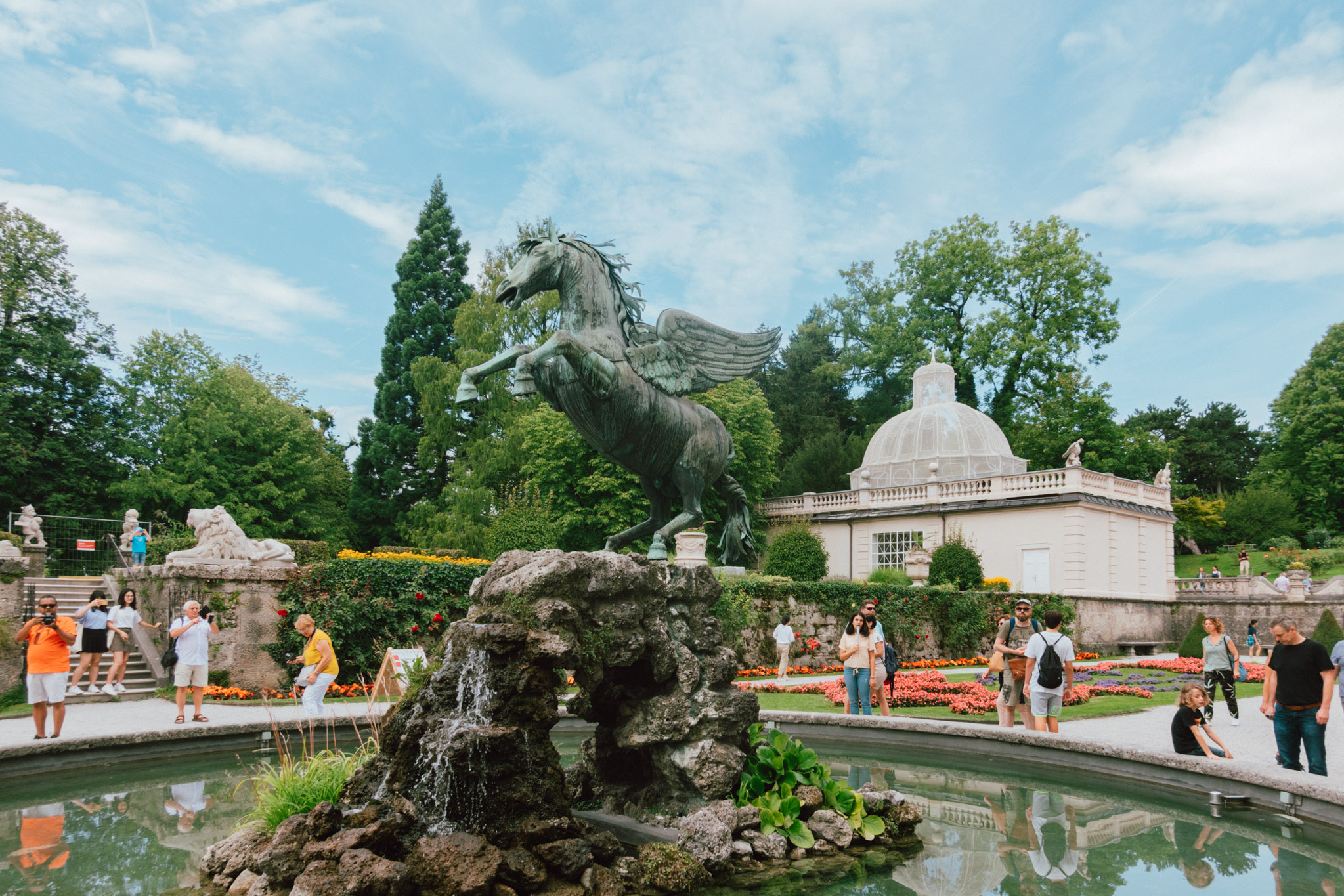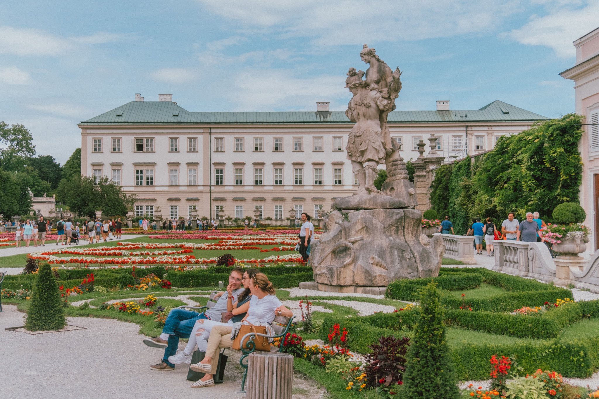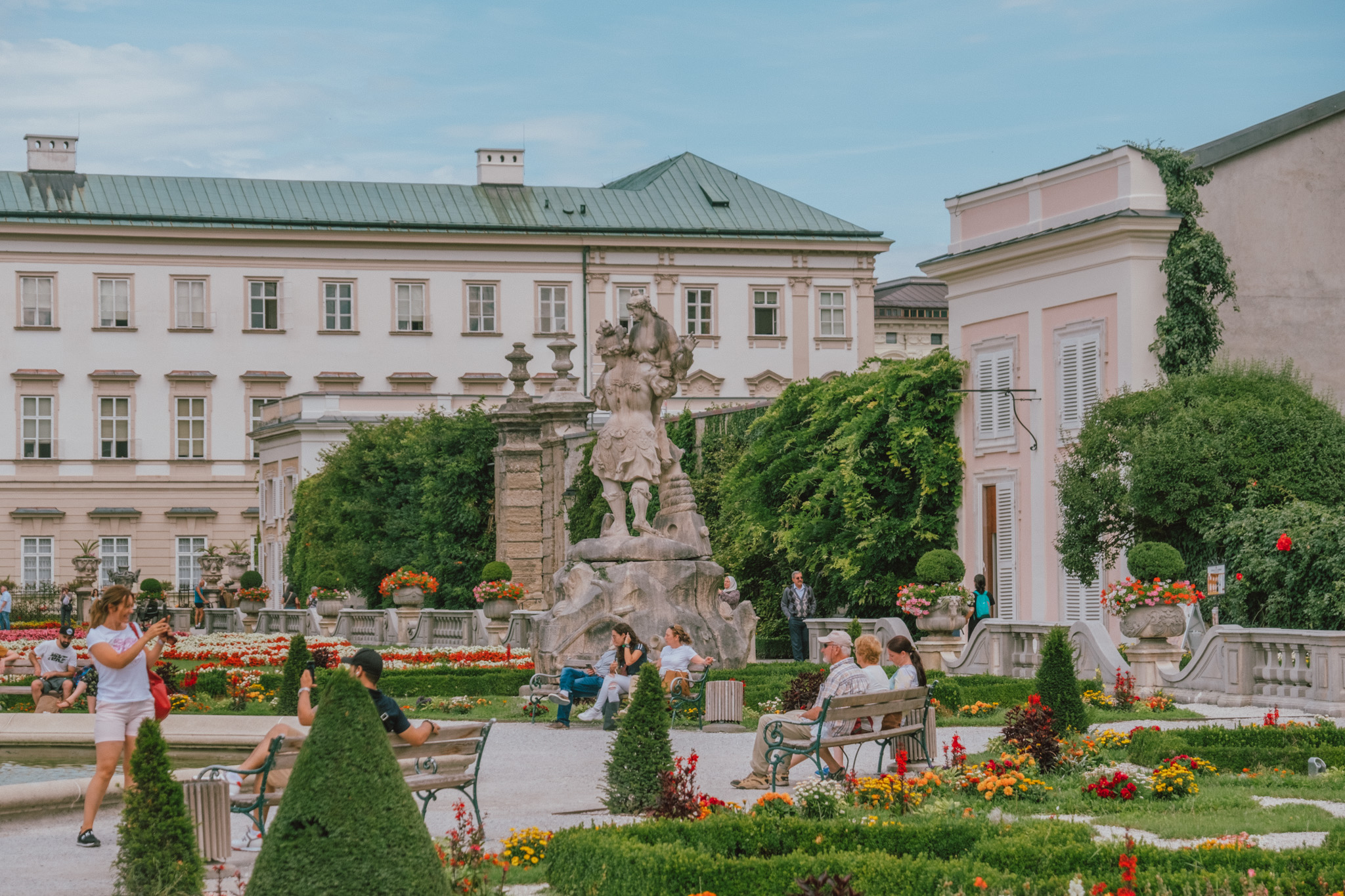 เราเริ่มต้นที่แรกแบบเวอร์วัง เพราะมันคือวังจริง ๆ ไงล่ะ Schloss Mirabell คือสวนของพระราชวังมิราเบลที่ถูกกล่าวขานว่าสวยที่สุดและดังสุดในเมือง Salzburg ตัวแทนแห่งรักอันยิ่งใหญ่ที่เจ้าชายอาร์คบิชอปแห่งซาลซ์บูร์กสร้างขึ้นเพื่อพระสนมของพระองค์ ความงามอันแสนโรแมนติกนี้ถูกออกแบบด้วยสถาปัตยกรรมแบบบาโรค ห้องด้านในที่เป็นไฮไลท์มากที่สุดของพระราชวังแห่งนี้คือโถงหินอ่อน ที่ถูกประดับประดาด้วยรูปปั้นหลากอิริยาบถ ทำให้มันกลายเป็นหนึ่งในสถานที่จัดงานแต่งงานยอดนิยม ด้านนอกก็โด่งดังไม่แพ้กันกับสวนขนาดใหญ่ที่ประกอบขึ้นจากพืชพรรณนานาชนิดที่เปลี่ยนหมุนตามฤดูกาล อันมีเบื้องหลังเป็นพระราชวังหลังงาม และจุดกึ่งกลางเป็นน้ำพุเพกาซัส รายล้อมอีกชั้นด้วยรูปปั้นเสมือนจริงที่กำลังดำเนินชีวิตแบบไม่เคลื่อนไหวในยุคศตวรรษที่ 17 สวยจนเผลอรัวชัตเตอร์แบบไม่ยั้งไปหลายมุม ที่สำคัญสำหรับนักเดินทางสายประหยัด “สวนนี้เข้าฟรีจ้า” ใส่ชุดมาเต็ม ๆ หน่อยรับรองได้ภาพสวย ๆ กลับไปเพียบแน่นอน