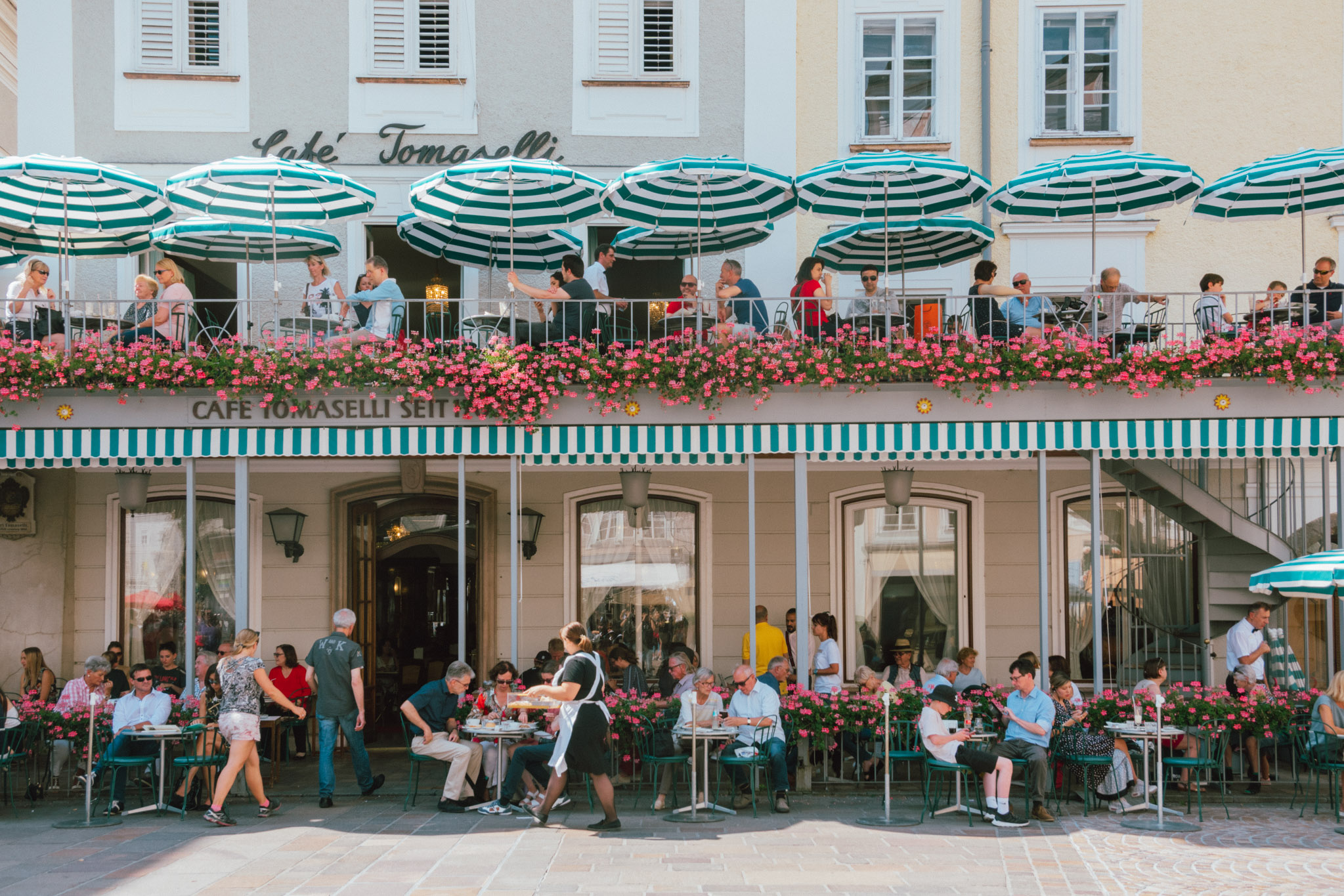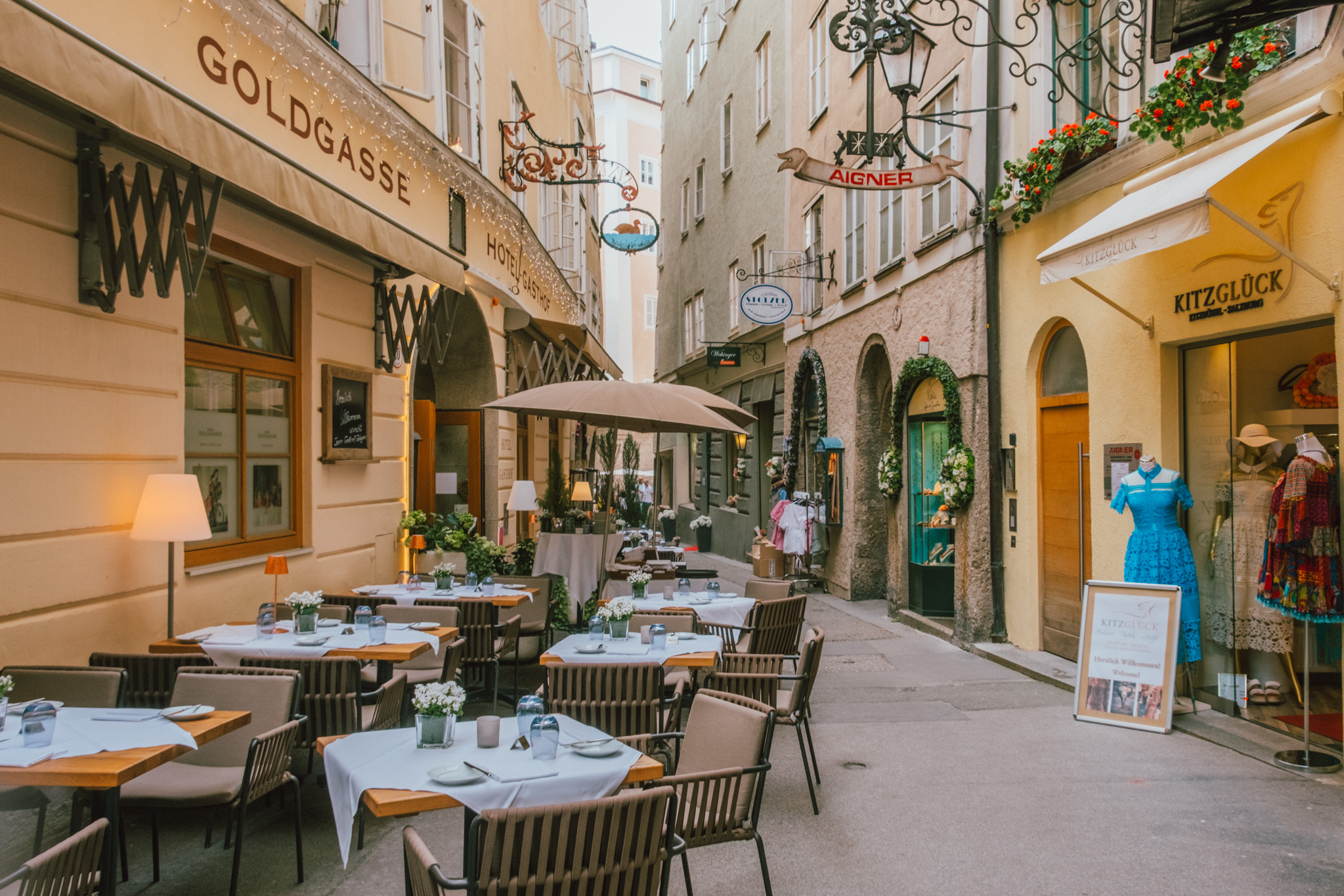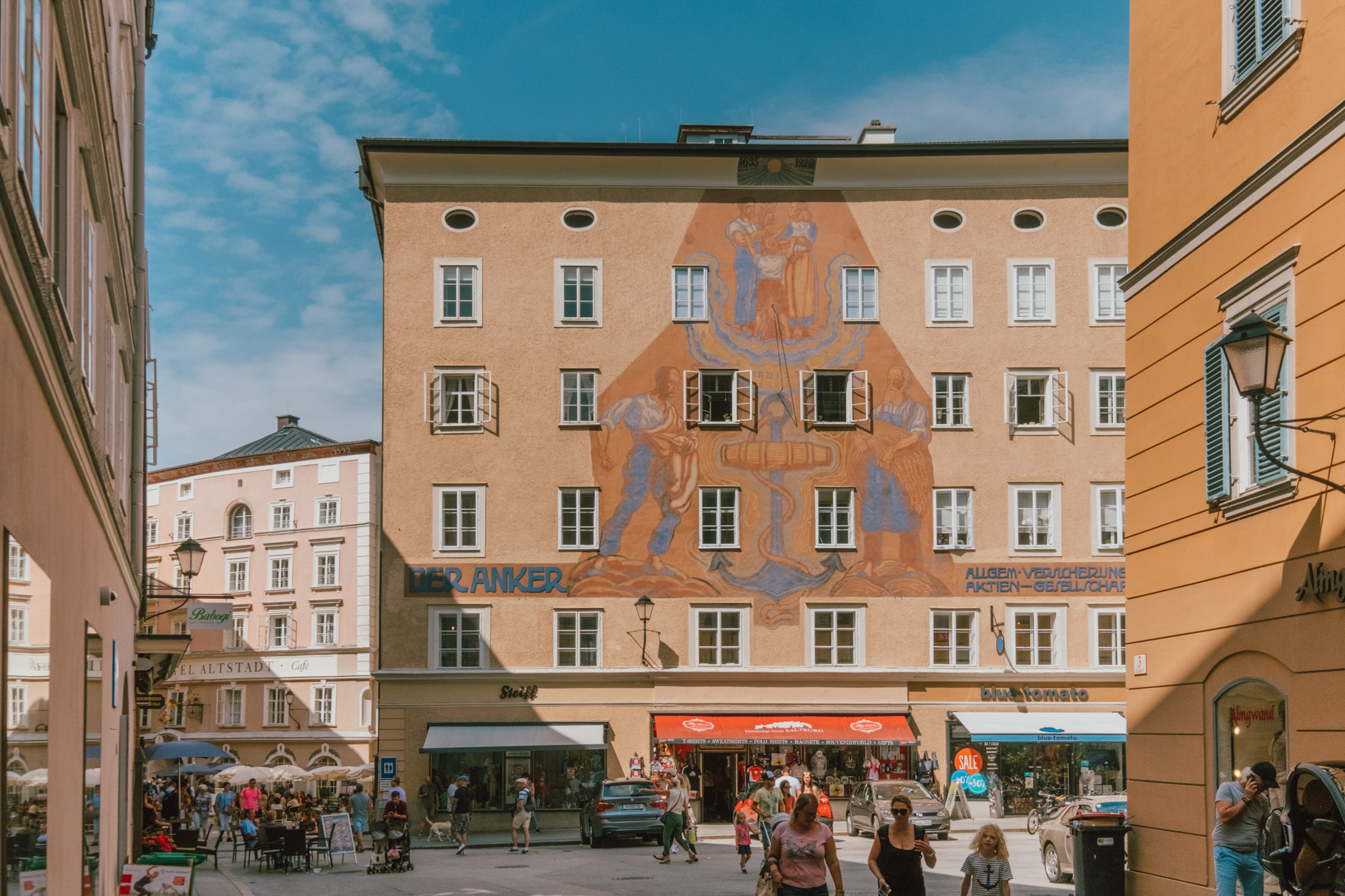 แค่ข้ามฝั่งมาความคึกคักก็ต่างออกไป ทั้งร้านอาหาร คาเฟ่ และร้านช้อปปิ้ง ทั้งแบรนด์เนมไฮแอนด์ สตรีทแบรนด์ และแบรนด์โลคอล ก็มีอยู่เต็มสองทางเดินบนถนน Getreidegasse คราวนี้ขาช้อปถึงคราวต้องแลกเงินผ่าน PLANET SCB ไว้ให้ดี เพราะมานี่ต่อให้ไม่ใช่หมอดูก็ยังรู้ว่ามีเกณฑ์เสียทรัพย์ ฟันธง!!!! อีกเหตุผลของความคึกคัก ก็เพราะย่านนี้เป็นบ้านเกิดของโมสาร์ท ที่ตัวบ้านสีเหลืองมัสตาร์ดตอนนี้ได้กลายเป็นมิวเซียมที่มีชื่อว่า Mozart’s Birthplace Mozart แต่เพราะที่นี่ห้ามถ่ายรูปด้านใน ดังนั้นแกก็คงต้องตีตั๋วมาดูเองด้วยตัวเองแล้วล่ะ