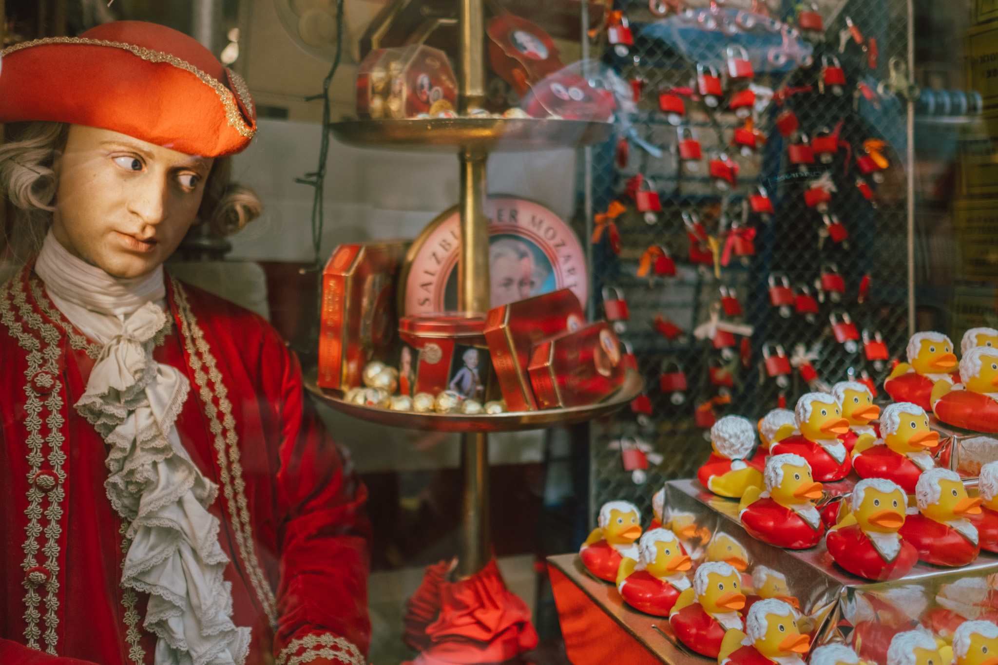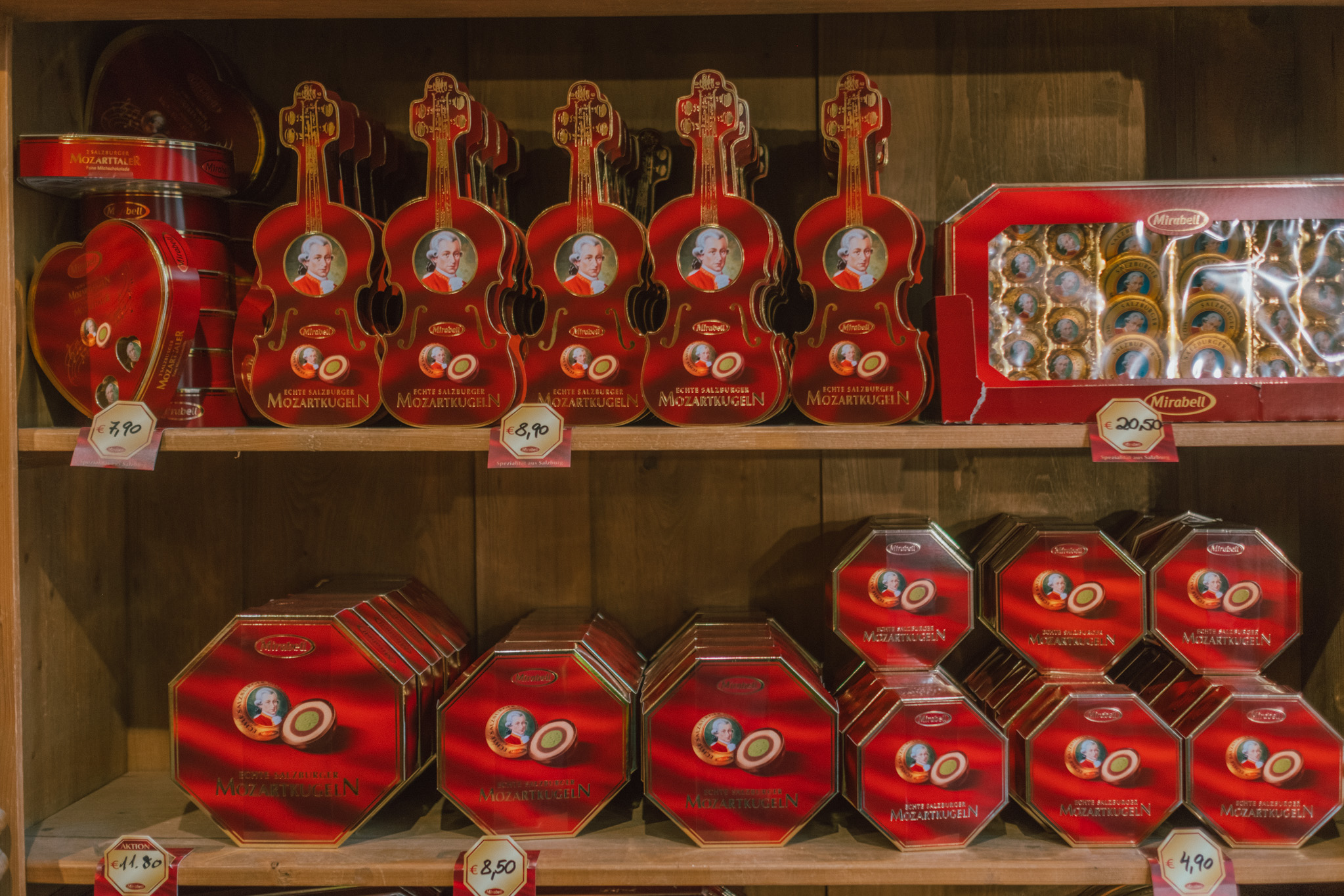 ความน่ารักอย่างหนึ่งของเมือง Salzburg คือเราจะได้เห็นเรื่องราวของโมสาร์ทในทุก ๆ แง่มุม รวมถึงพวกของฝากต่าง ๆ เพราะไม่ว่าจะช็อคโกแลต น้ำหอม เสื้อผ้า และอีกสารพัดของฝาก ล้วนนำโมสาร์ทมาเป็นส่วนหนึ่งของผลิตภัณฑ์ทั้งนั้น ดูแล้วเค้าคงเป็นความภาคภูมิใจที่สุดของเมืองนี้จริง ๆ