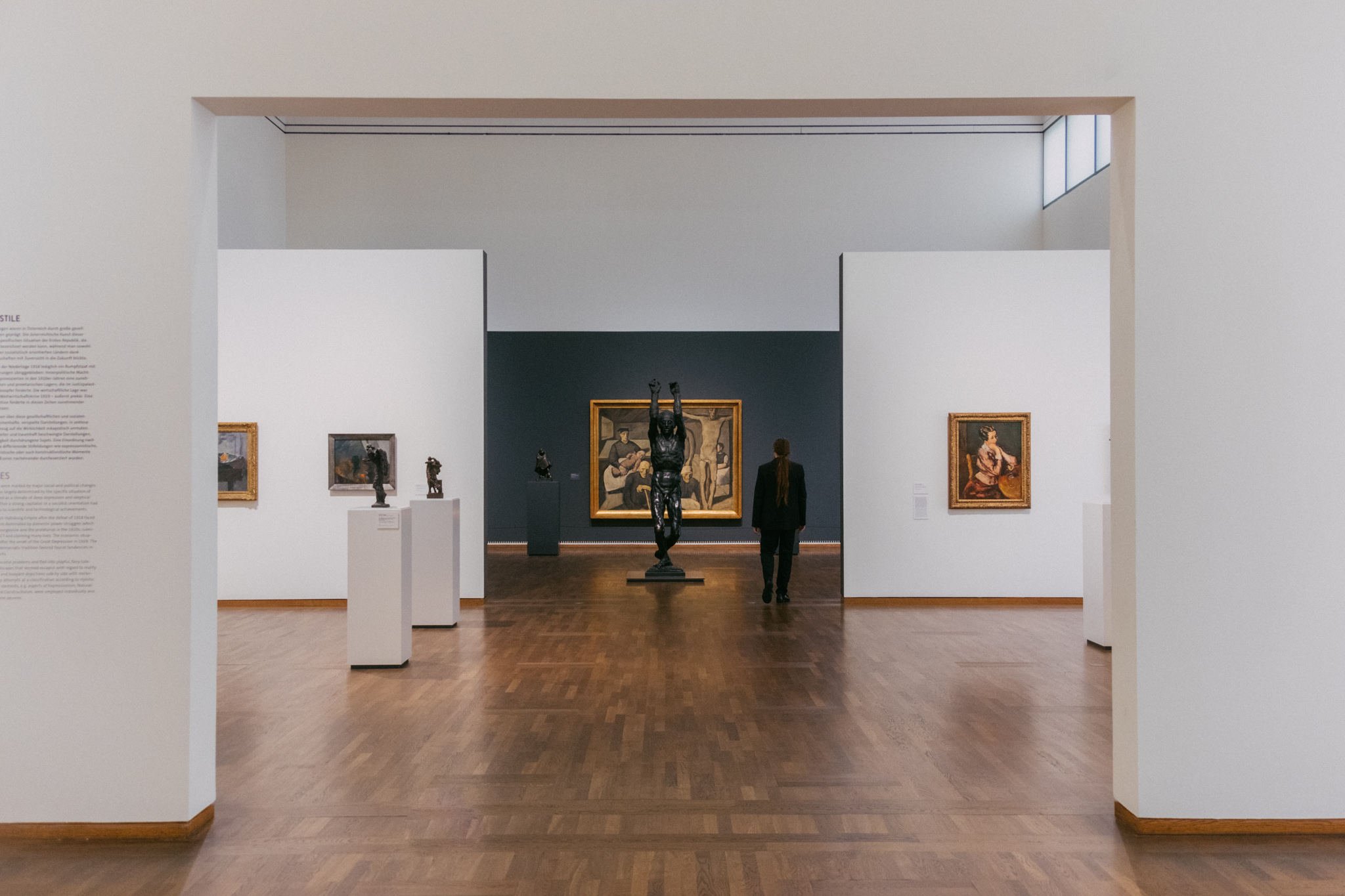 และที่แรกที่เราอยากจะเข้าไปดูก็คือ Leopold Museum พื้นที่จัดแสดงศิลปะที่โดดเด่นร้อนแรง และเป็นเอกลักษณ์ผ่านสีสันที่จัดจ้านและเส้นที่คมชัด เพื่อเล่าเรื่องราวของเมืองเวียนนาในยุค 1900 เราจึงได้เห็นการแสดงออกทางความคิดอย่างอิสระเสรี ในการวิพากษ์วิจารณ์สังคมผ่านศิลปะจากจิตรกรแนวนวศิลป์และเอ็กซ์เพรสชันนิสม์ของประเทศออสเตรีย โดยเฉพาะอย่างยิ่งผลงานของ สชีล (Schiele) ก็ถูกนำมาจัดไว้ที่นี่มากที่สุดในโลกด้วย