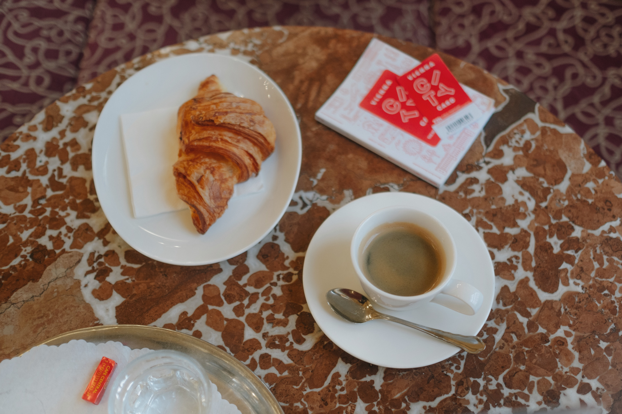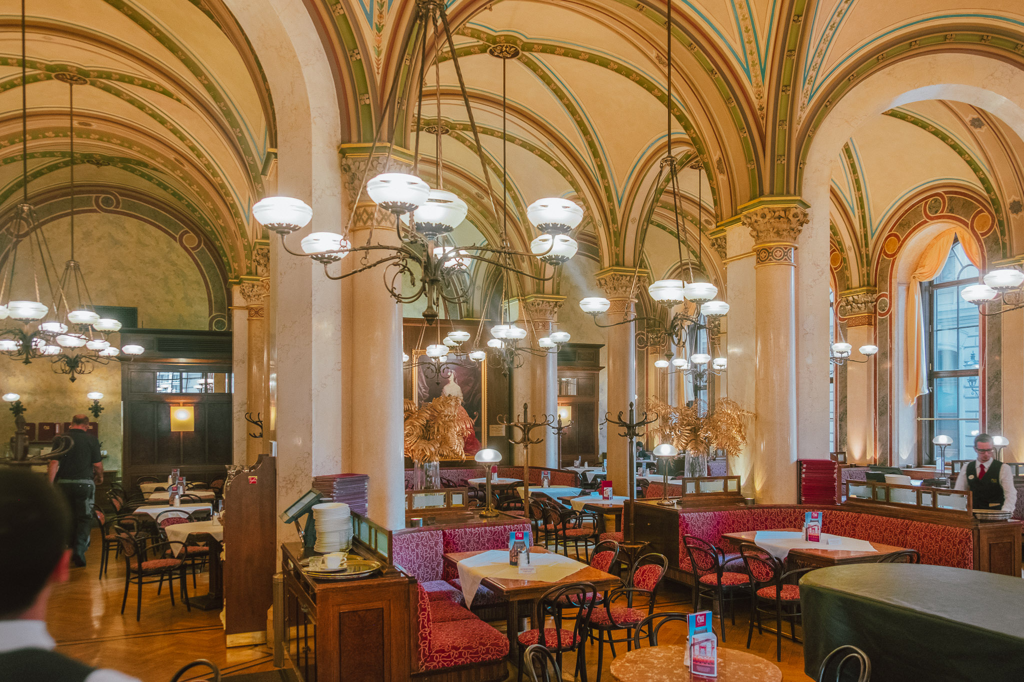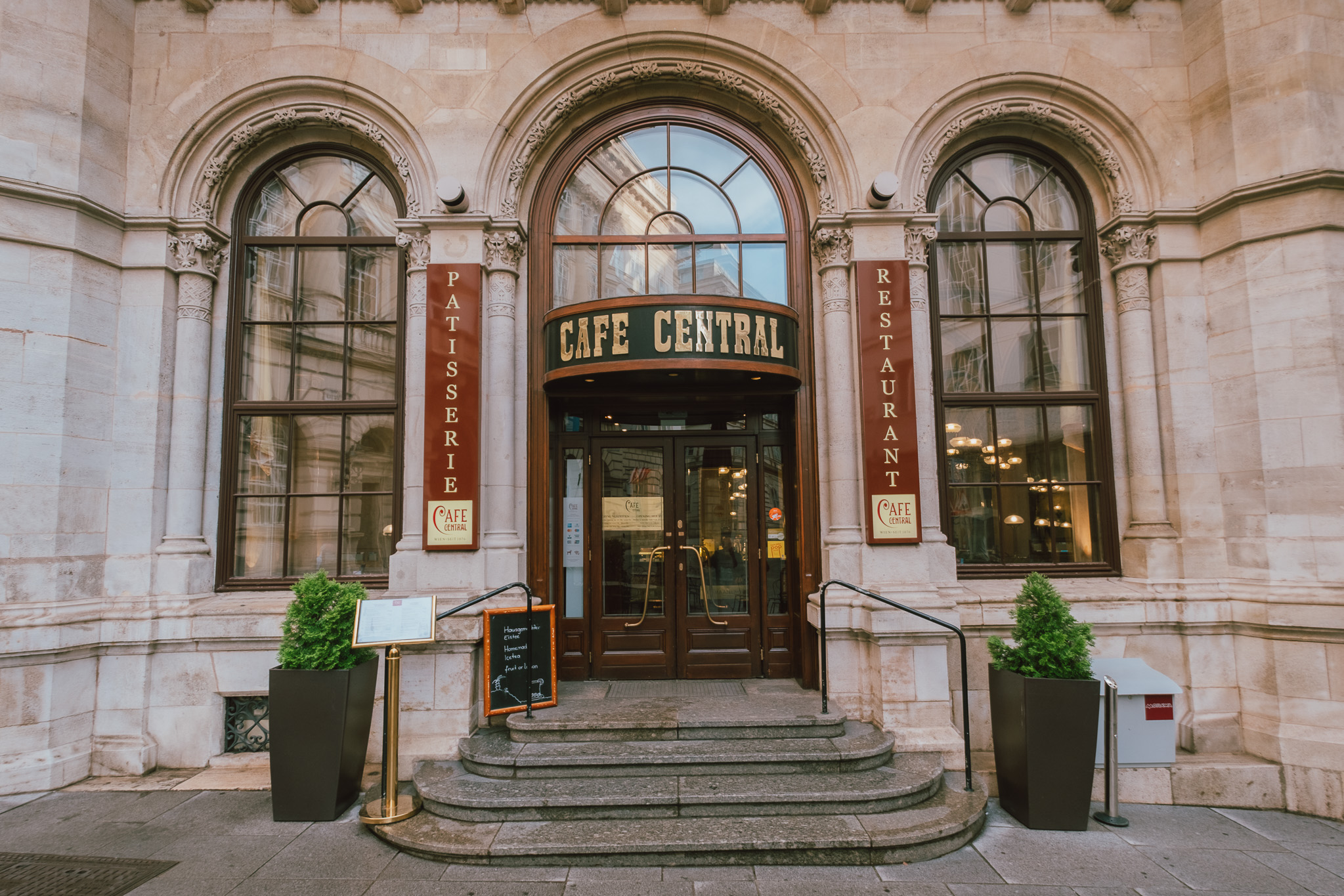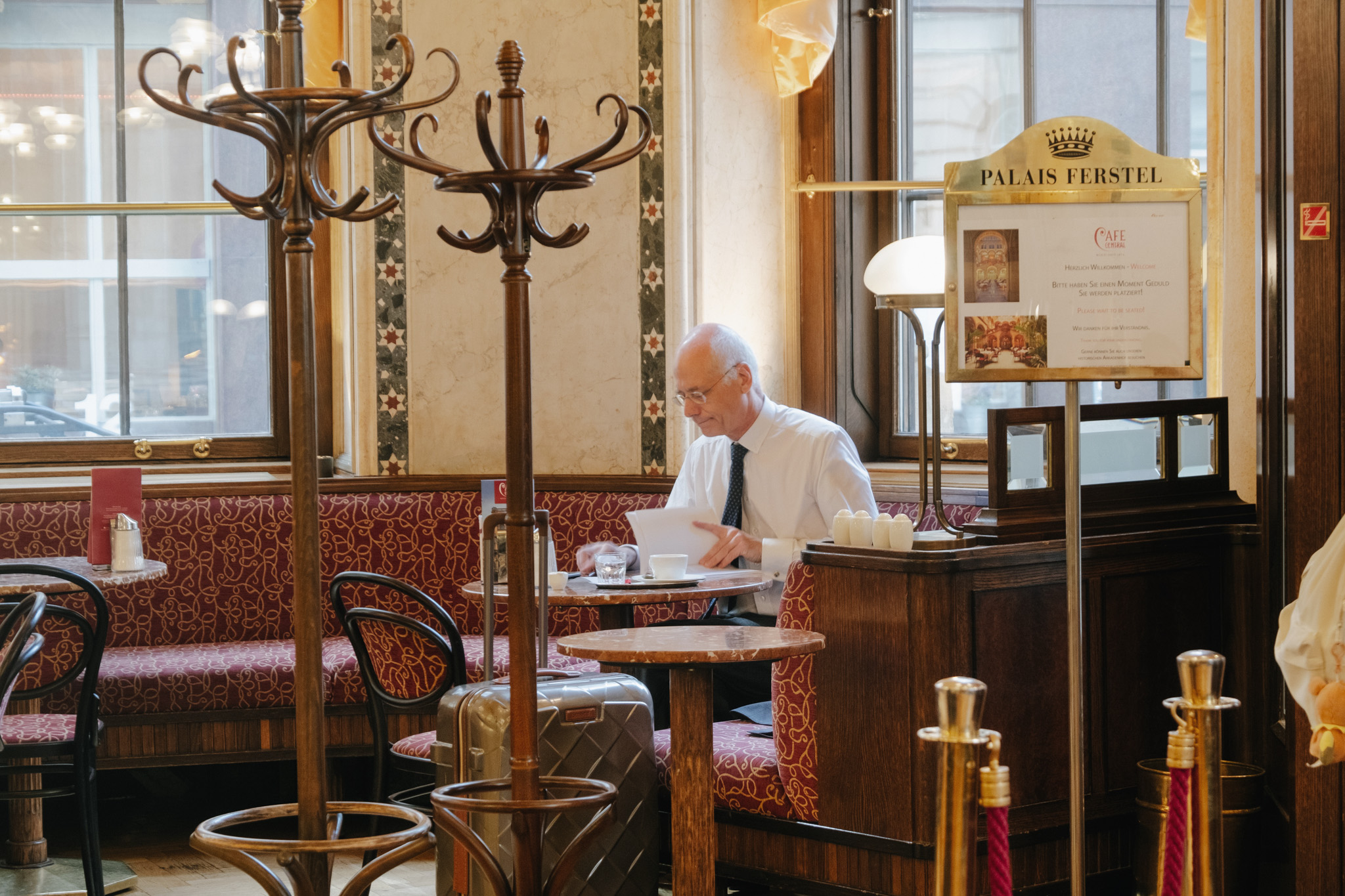 เช้าวันที่สองในกรุงเวียนนา เราตื่นแต่เช้าเพื่อรีบมายังคาเฟ่ที่ชื่อว่า Cafe’ Central หนึ่งในร้านที่เป็นเสมือนแลนด์มาร์คสำคัญของเมืองสุดแสนจะโด่งดัง เพราะนอกจากจะให้บริการเสิร์ฟขนมหลากหลายชนิดและเครื่องดื่มที่อร่อยชวนฝันมายาวนาน 141 ปีแล้ว ภายในคาเฟ่ที่ดูเหมือนพระราชวังขนาดย่อมแห่งนี้ ก็ยังมีเรื่องราวมากมายของบุคคลระดับโลกที่น่าสนใจ ไม่ว่าจะเป็น ลีออน ตรอทสกี นักปฏิวัติ, ซิกมันด์ ฟรอยด์ นักจิตวิเคราะห์ รวมถึงนักประพันธ์และนักแต่งกลอนระดับโลกอีกหลายคนล้วนต่างเคยเดินเข้าออกคาเฟ่แห่งนี้มาแล้วทั้งนั้น ทำให้ผู้คนที่เดินทางมายังเมืองนี้ล้วนแล้วแต่มาต่อคิวเพื่อรอสัมผัสบรรยากาศระดับโลกกันอย่างคึกคัก ดังนั้นถ้าแกมาสายแม้เพียงนิดเดียวก็อาจจะต้องรอต่อคิวยาวหลายชั่วโมง