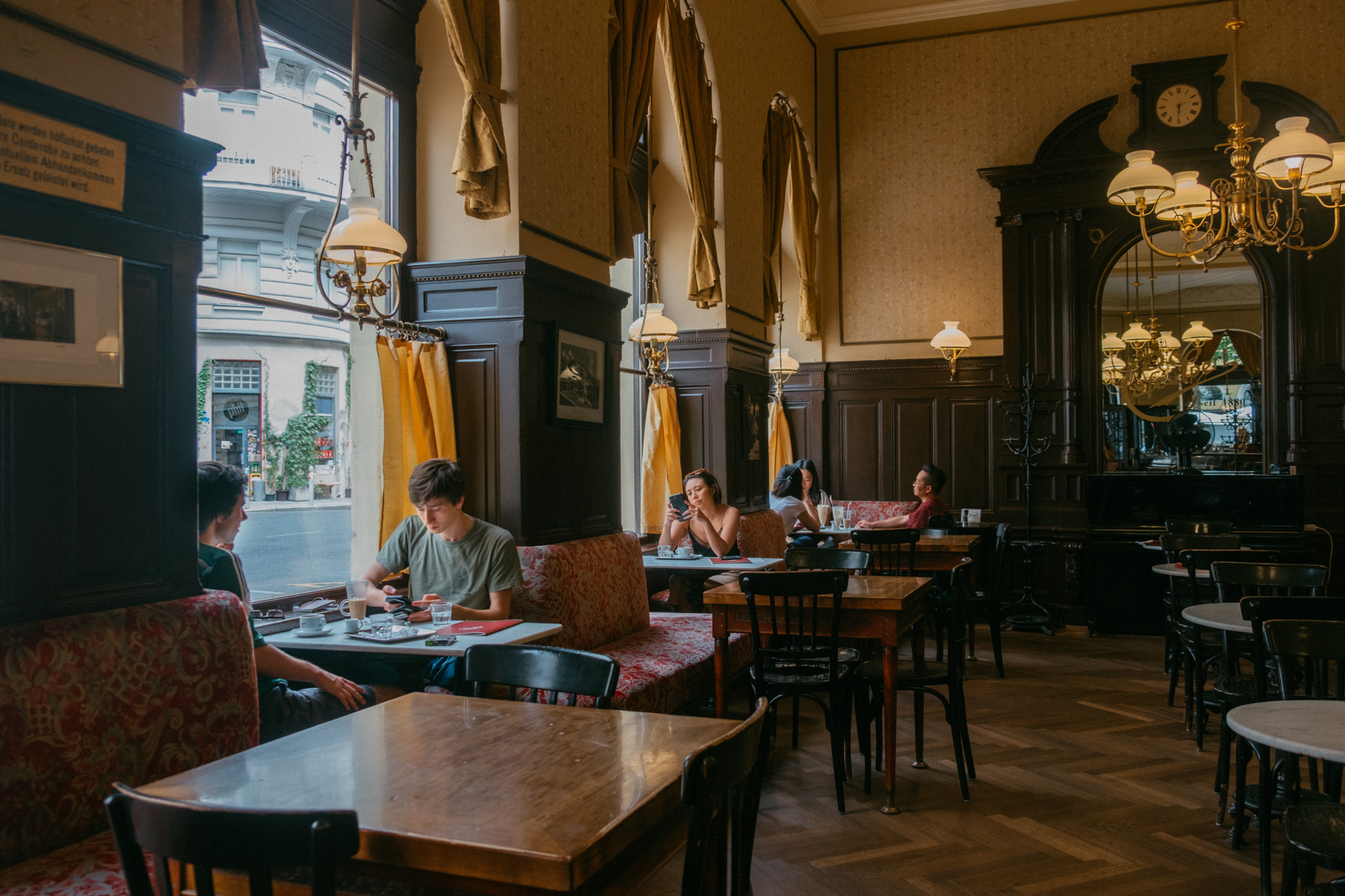 ทริปนี้นอกจากเราจะได้เดินทางตามหน้าประวัติศาสตร์ของเวียนนาแล้ว เรายังได้เดินทางตามหนังเรื่องโปรดอย่าง Before Sunrise กันแบบรัว ๆ มันช่างตอบโจทย์นักเดินทางสายจินตนาการอย่างเราเป็นที่สุด ดังนั้นอีกหนึ่งคาเฟ่ตามรอยหนังที่พลาดไม่ได้ก็คือ Cafe’ Sperl คาเฟ่สไตล์เวียนนาแบบดั้งเดิมที่ให้บรรยากาศของศตวรรษที่ 18 อย่างเด่นชัด เพราะภายในตึกสีครีมที่เหมือนกับแพนเค้กยามเช้าคือโคมไฟทรงกลมที่แสนอบอุ่น โซฟา เบาะผ้า และโต๊ะหินอ่อน ตรงเป๊ะกับฉากในหนังที่เราแสนรัก และไม่ต้องมากความ แค่กาแฟดำเข้ม ๆ น้ำตาลสองก้อนหนึ่งแก้วก็เพียงพอแล้วที่จะทำให้เราสุขใจแล้ว