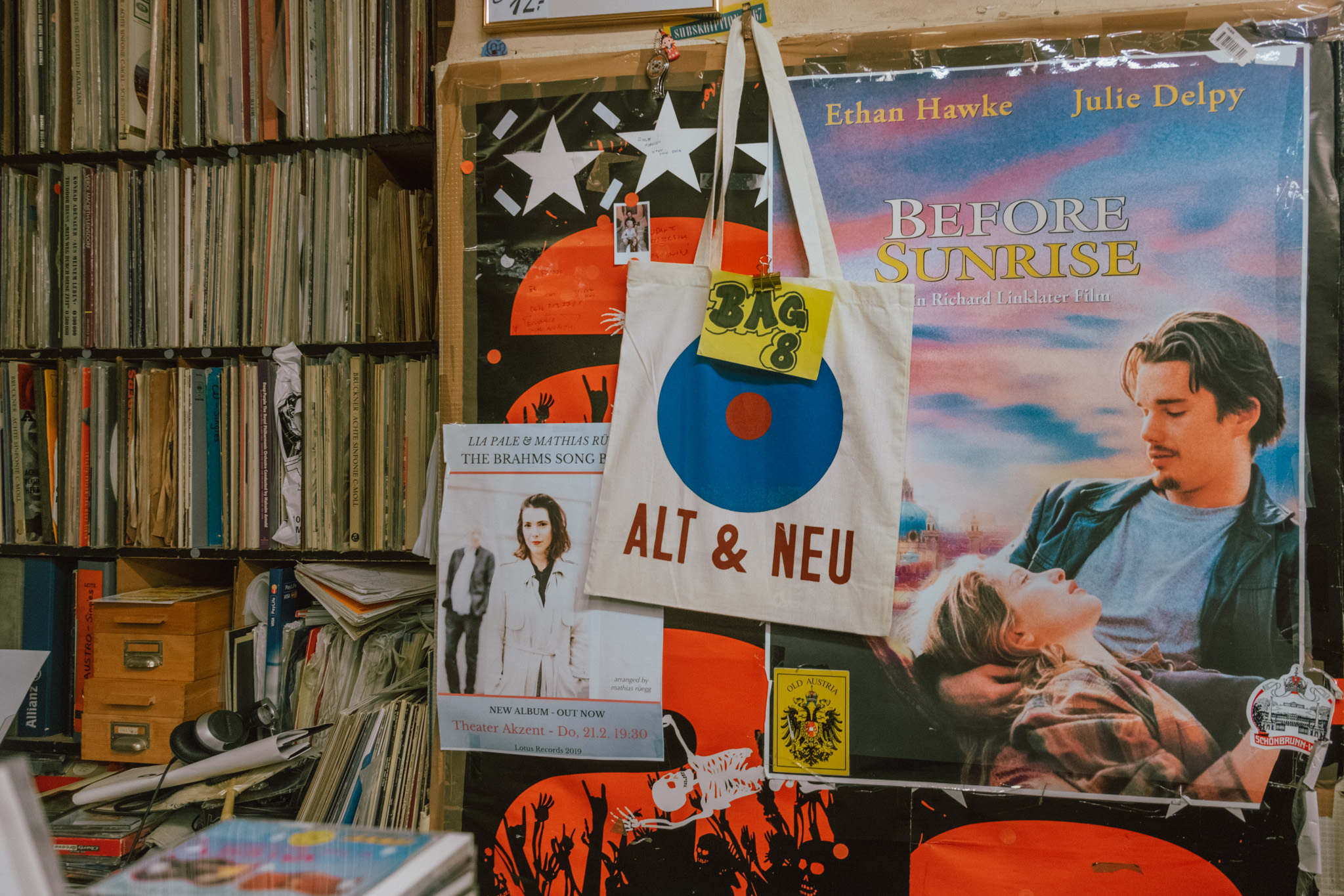 โลเคชั่นทิ้งท้ายเวียนนาวันนี้ คืออีกหนึ่งสถานที่ในหนัง Before Sunrise ที่มีชื่อว่า Alt und Neu ร้านแผ่นเสียงที่เหมือนหลุดออกมาจากนิยาย หรืออีกมุมหนึ่งมันอาจจะเป็นร้านแผ่นเสียงที่หลุดเข้าไปในนิยายก็ว่าได้ เป็นความคลาสสิกตัวพ่อที่ชวนถ่ายรูปและดื่มด่ำกับบรรยากาศ แม้จะไม่ได้รู้เรื่องราว หรือหลาย ๆ คนอาจจะเกิดไม่ทันยุคที่แผ่นเสียงบูมเลยด้วยซ้ำ แต่แสงสีเหลืองอุ่น ๆ กับกลิ่นแปลก ๆ ของกลุ่มกระดาษก็ทำให้เรารู้สึกคุ้นเคยและหลงรักจนอยากจะได้แผ่นเสียงติดมือมาเป็นของที่ระลึกสักสองสามแผ่น ดังนั้นแฟนหนังจึงไม่ควรพลาด ส่วนนักท่องเที่ยวธรรมดาก็ไม่ควรพลาดเช่นกัน