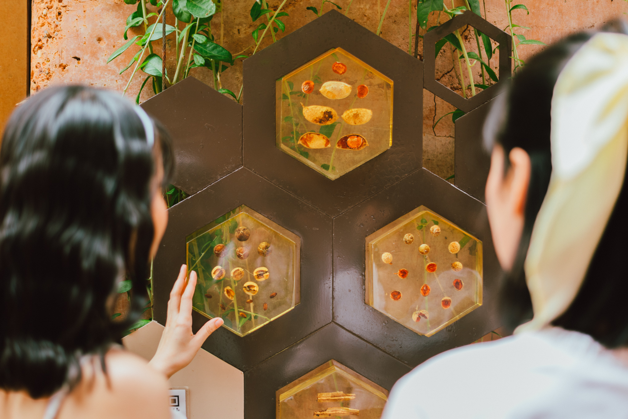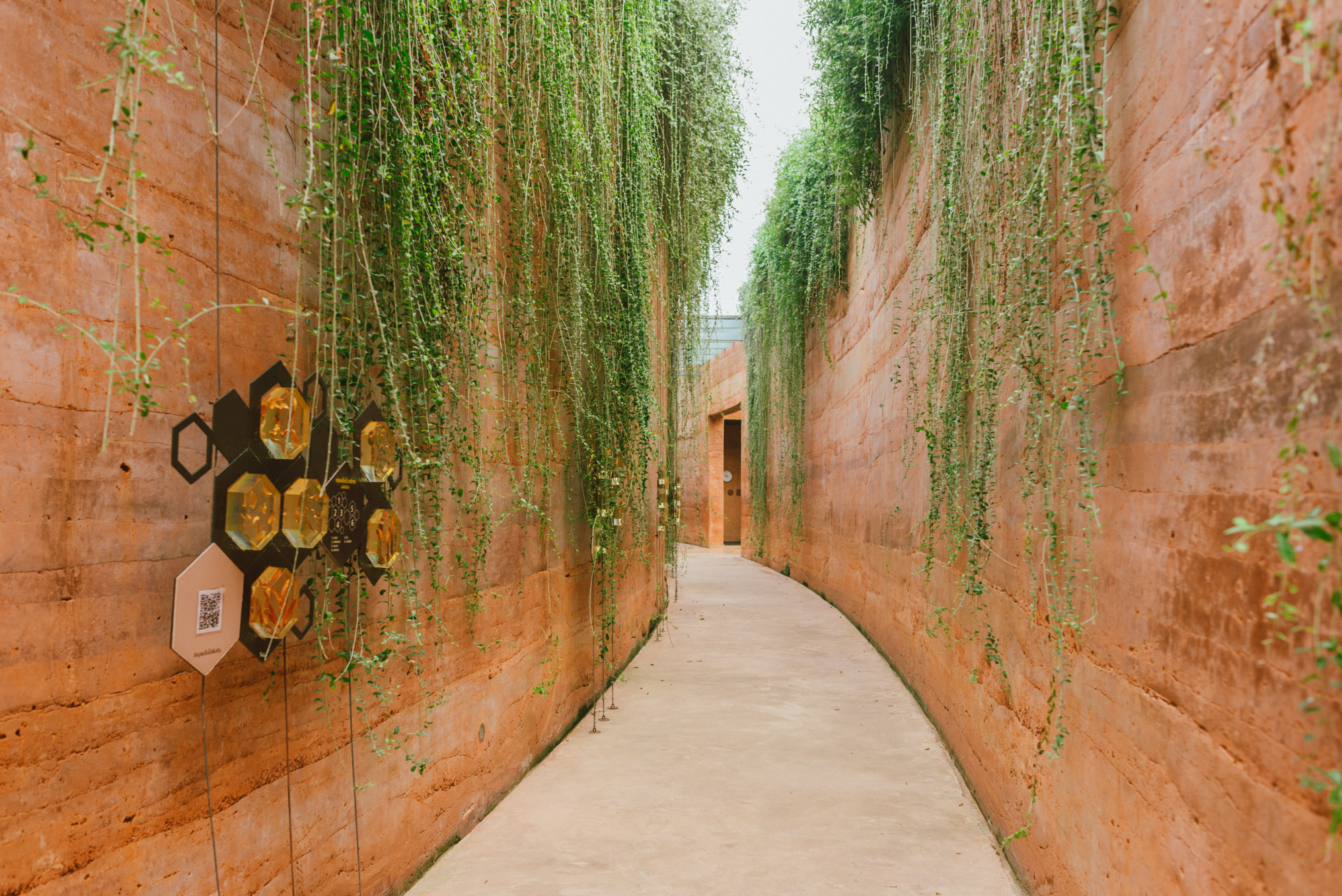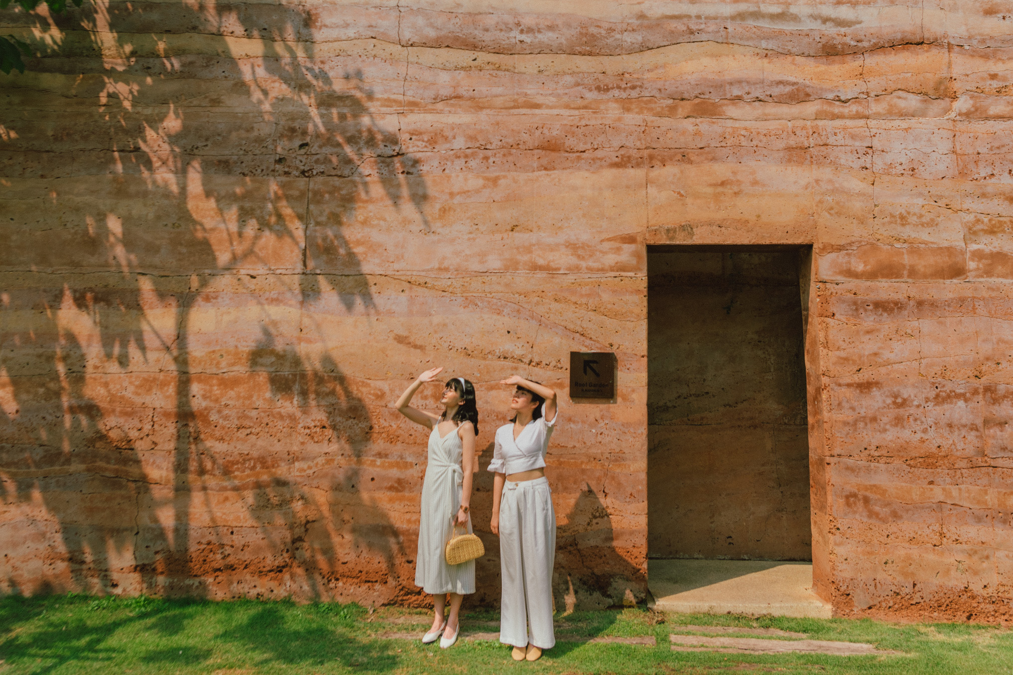 สตาร์ทแบบปุ๊บปั๊บกับโลเคชั่นแรกที่จะทำให้อะดรีนาลีนในร่างกายของพวกเธอหลั่ง เพราะความเวอร์วังของพื้นที่สีเขียว ที่จะมาช่วยยกกระชับปรับระดับความสัมพันธ์ของคนและผืนป่าให้แน่นแฟ้นขึ้นกว่าเดิม ที่นี่คือโครงการการพัฒนาพื้นที่สีเขียว ที่ได้ประยุกต์หลักการสร้างป่านิเวศตามแนวคิดของศาสตราจารย์ด็อกเตอร์อาคิระ มิยาวากิ มาเนรมิตพื้นที่รกร้างกว่า 12 ไร่บนถนนสุขาภิบาลสองให้กลายเป็นพื้นที่ปลูกป่านิเวศที่สมบูรณ์ และเป็นศูนย์การเรียนรู้ รวมถึงมีนิทรรศการเกี่ยวกับความหลากหลายของพันธุ์ไม้ดั้งเดิมและพันธุ์ไม้หายากอีกกว่า 250 ชนิด ให้เราได้ชมกันด้วย และยังไม่ทันที่เราจะต้องไปไหนไกลเพราะเพียงแค่ก้าวเท้าเข้าสู่จุดแรกอย่างโซนอาคารดิน เราก็รู้สึกได้ถึงบรรยากาศรอบข้างที่เปลี่ยนแปลงไปอย่างมาก เปลี่ยนจากตึกสูงเป็นต้นไม้ใหญ่ เปลี่ยนจากความร้อนเป็นความร่มเย็น เปลี่ยนจากความแห้งกระหายเป็นความสดชื่น