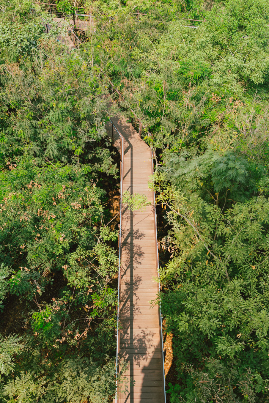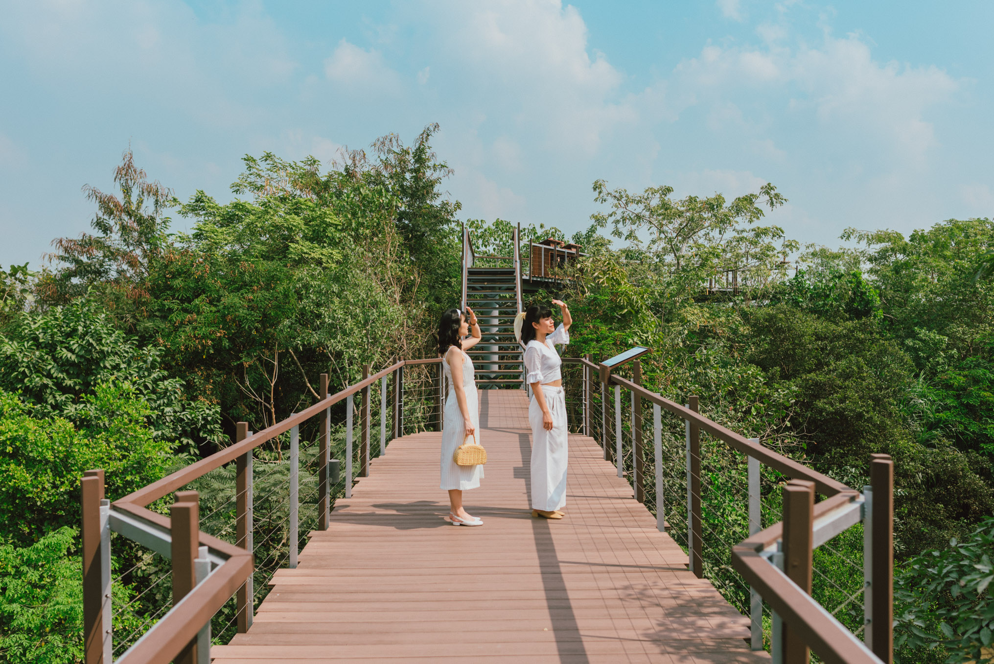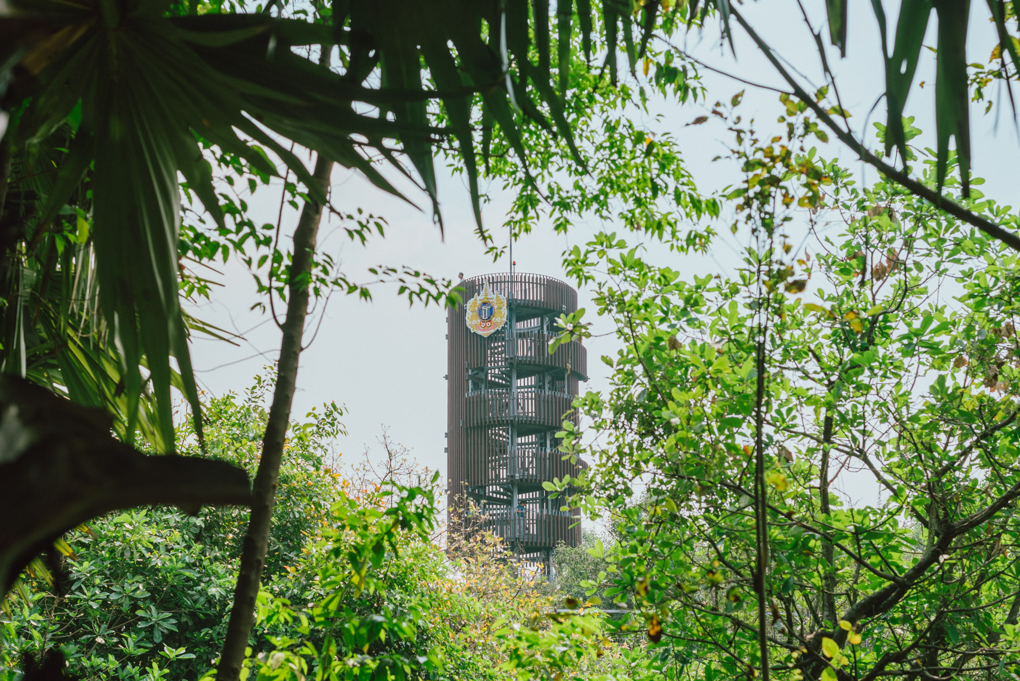 หากยังไม่จุใจกับการชื่นชมธรรมชาติ เชื่อมกันกับสกายวอล์คเราก็จะพบกับ Observation Tower หอชมวิวที่มีความสูงถึง 23 เมตร มีทั้งหมดเจ็ดชั้นที่เราสามารถพาตัวเองขึ้นไปชมพื้นที่สีเขียวได้แบบ 360 องศาและยิ่งทำให้เราเห็นชัดขึ้นว่าทำไมที่นี่จึงถูกเรียกว่าป่าในกรุง เพราะถัดจากพื้นที่สีเขียว 12 ไร่ทั้งหมดนี้ไปคือบ้านเรือนของผู้คนและตึกสูงของกรุงเทพฯ และ ณ จุดตัดของสีเขียวอันร่มรื่น และสีเทาของคอนกรีต ก็ทำให้เราตระหนักถึงความสำคัญของสิ่งแวดล้อมไม่ว่าจะเป็นการงดใช้ถุงพลาสติก การรียูส เพราะเราอยากจะเห็นโลกของเรามีสิ่งแวดล้อมดี ๆ ไปอีกนาน ๆ