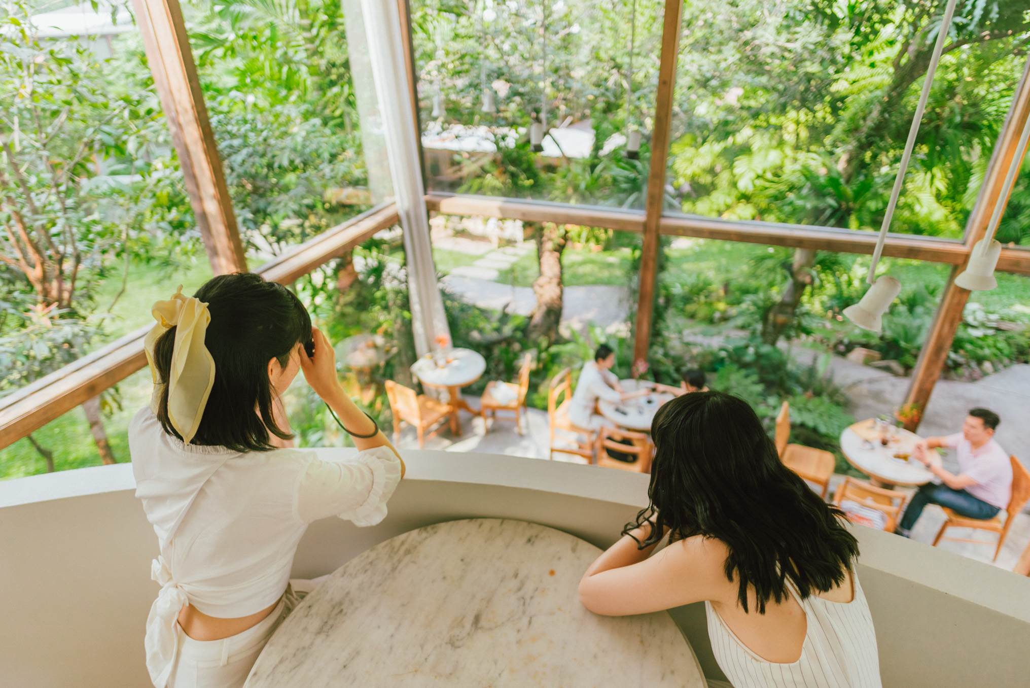 อีกหนึ่งโลเคชั่นที่แสนจะสดชื่นที่เราอยากจะแนะนำก็คือ ออแกนิคคาเฟ่ย่านทองหล่อ ที่แค่เห็นก็รู้สึกใจเต้นไปด้วยความสุขกับสีเขียวที่ชวนเบิกบา นและร้านสไตล์กลาสเฮ้าส์อบอุ่นน่ารัก เรียบหรูดูมินิมอลล์ และเป็นมิตรกับสิ่งแวดล้อม เพราะโครงสร้างของตัวร้านที่เราเห็นอยู่นี้ เค้านำไม้เก่าจากแพสวนสามพรานมารียูสเป็นร้านใหม่ที่ไฉไลกว่าเดิม การดีไซน์ที่เน้นความสูงโปร่งก็ช่วยให้ลดการใช้พลังงานไฟฟ้าได้อย่างดีในตอนกลางวัน ดีต่อใจ ไอเดียกระฉูดขนาดนี้ ใครจะอดใจไม่แวะเข้าไปพักผ่อนหย่อนใจไหวกันล่ะ