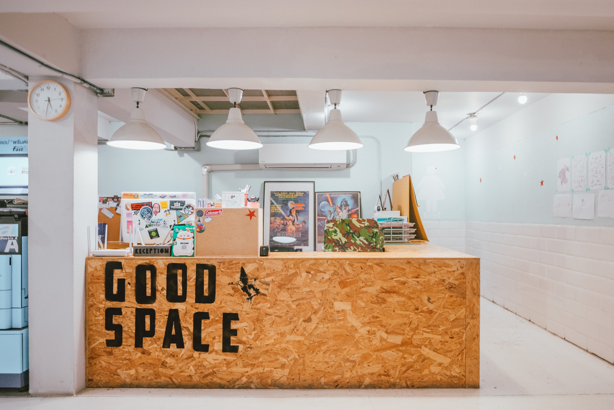 หนึ่งในที่ ๆ เราอยากแนะนำก็คือ Good Space นี่ล่ะจ้า เพราะว่าที่นี่เค้าเป็นเหมือน Creative Space ที่สร้างแรงบันดาลใจและไอเดียใหม่ ๆ ผ่านการดีไซน์ที่เน้นความโปร่งสบาย โดยได้ทำการรีโนเวทอาคารพานิชย์อายุกว่า 30 ปีเก่า ๆ ให้กลายเป็นสถานที่สร้างแรงบันดาลใจ และมีรายละเอียดที่น่ารักเล็ก ๆ น้อย ๆ ที่ช่วยกระตุ้นไอเดียของเราได้อย่างดี เช่นการตั้งชื่อน่ารัก ๆ ให้กับชั้นต่าง ๆ ของอาคาร