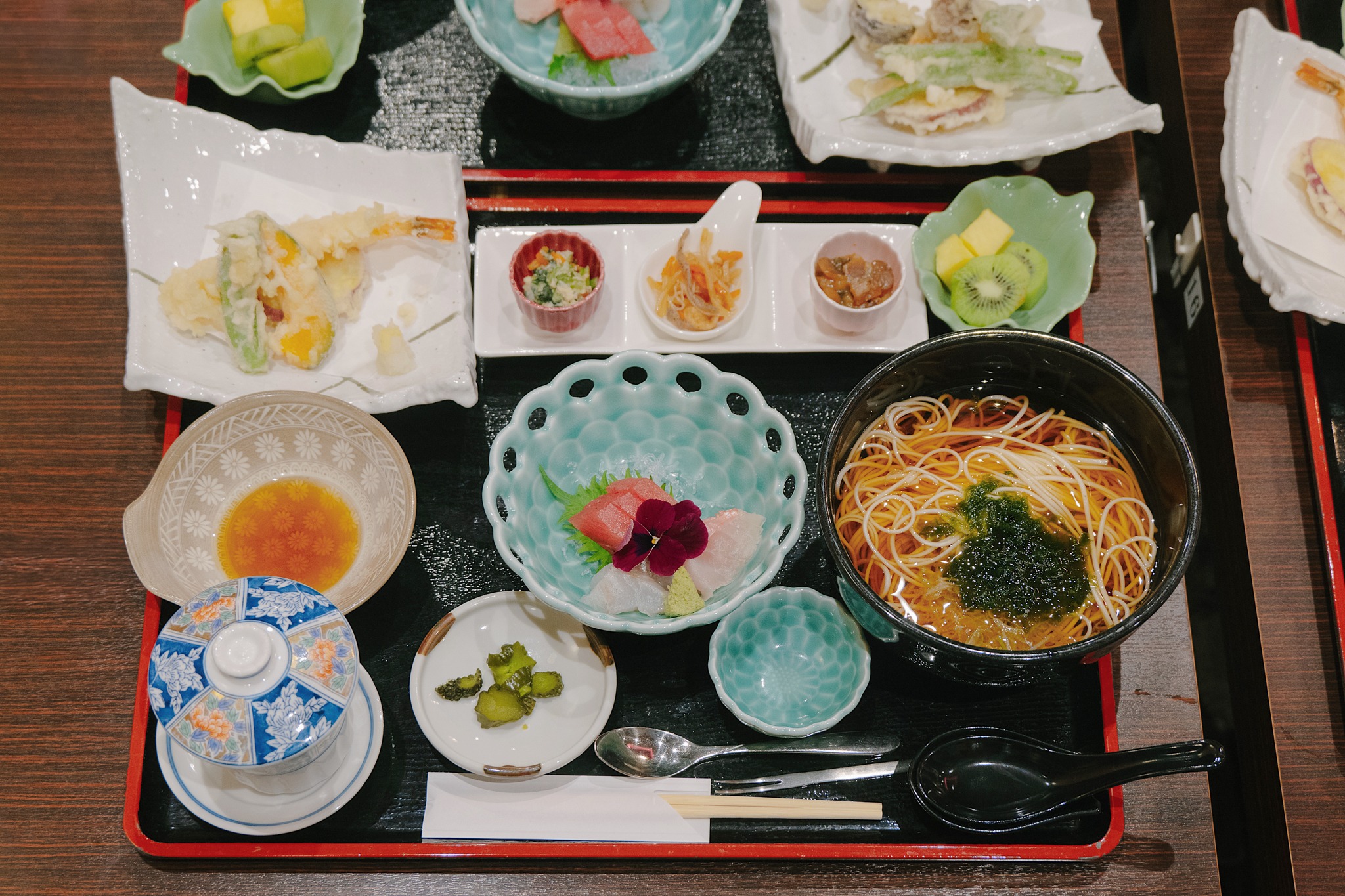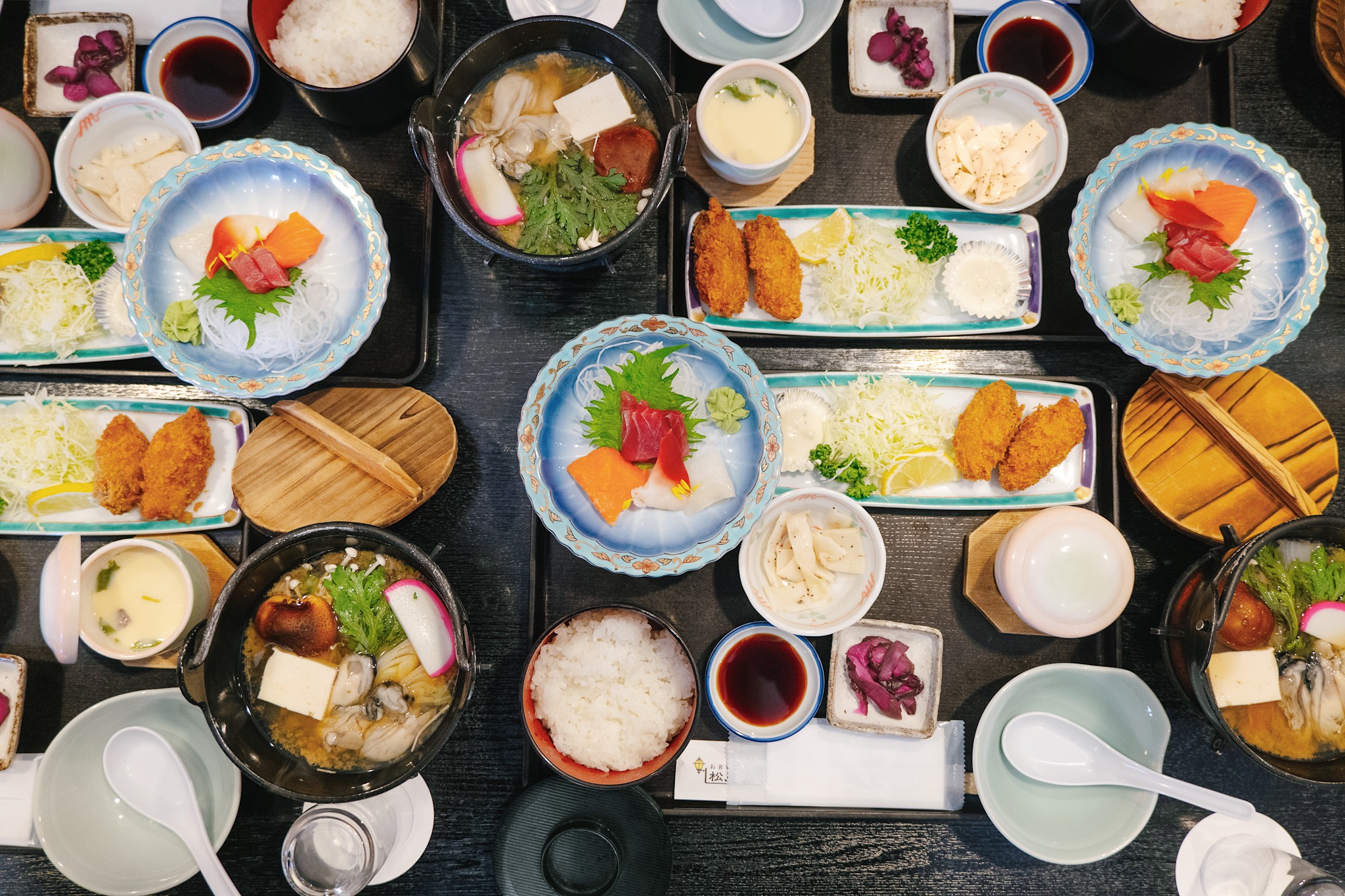 ก่อนจะเร่ิมเดินเล่นชมอ่าว เราขอแวะเติมพลังด้วยมื้อเที่ยงที่ Restaurant Matsushima Romantei (松島浪漫亭) ร้านอาหารท้องถิ่นบรรยากาศเรียบง่ายแต่ดูดี สไตล์ญี่ปุ่นแท้ ๆ ที่ชูวัตถุดิบให้เป็นพระเอก เซ็ตที่เราเลือกเป็นชุดอาหารญี่ปุ่นซึ่งจัดมาแบบครบถ้วน ไฮไลต์อยู่ที่ เทมปุระหอยนางรม ชิ้นโต ทอดมากรอบนอกนุ่มใน ไม่อมน้ำมัน และ หม้อไฟหอยนางรม น้ำซุปใสหวานละมุน กลิ่นทะเลชัดเจนแบบไม่ต้องปรุงเพิ่ม ซดเพลินจนหมดหม้อโดยไม่รู้ตัว หอยนางรมจากมัตสึชิมะถือเป็นหนึ่งในวัตถุดิบระดับท็อปของญี่ปุ่น ด้วยสภาพอ่าวที่อุดมสมบูรณ์ ทำให้เนื้อหอยแน่น หวาน และสะอาด จนมักติดอันดับแหล่งหอยนางรมคุณภาพของประเทศอยู่เสมอ ตัวร้านตกแต่งเรียบสงบ ไม่หวือหวา แต่ให้บรรยากาศสบาย ๆ เหมาะกับการนั่งกินข้าวแบบเริ่ด ๆ