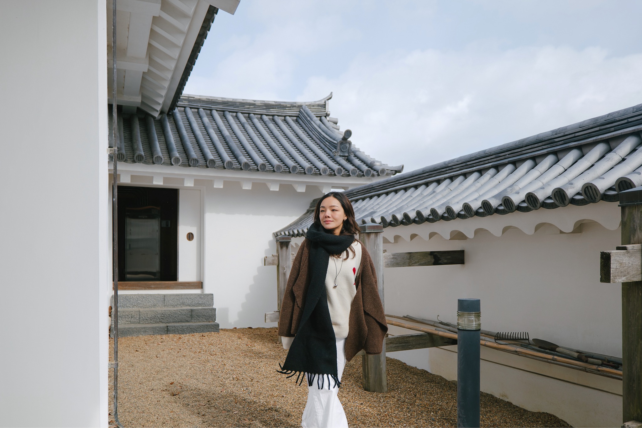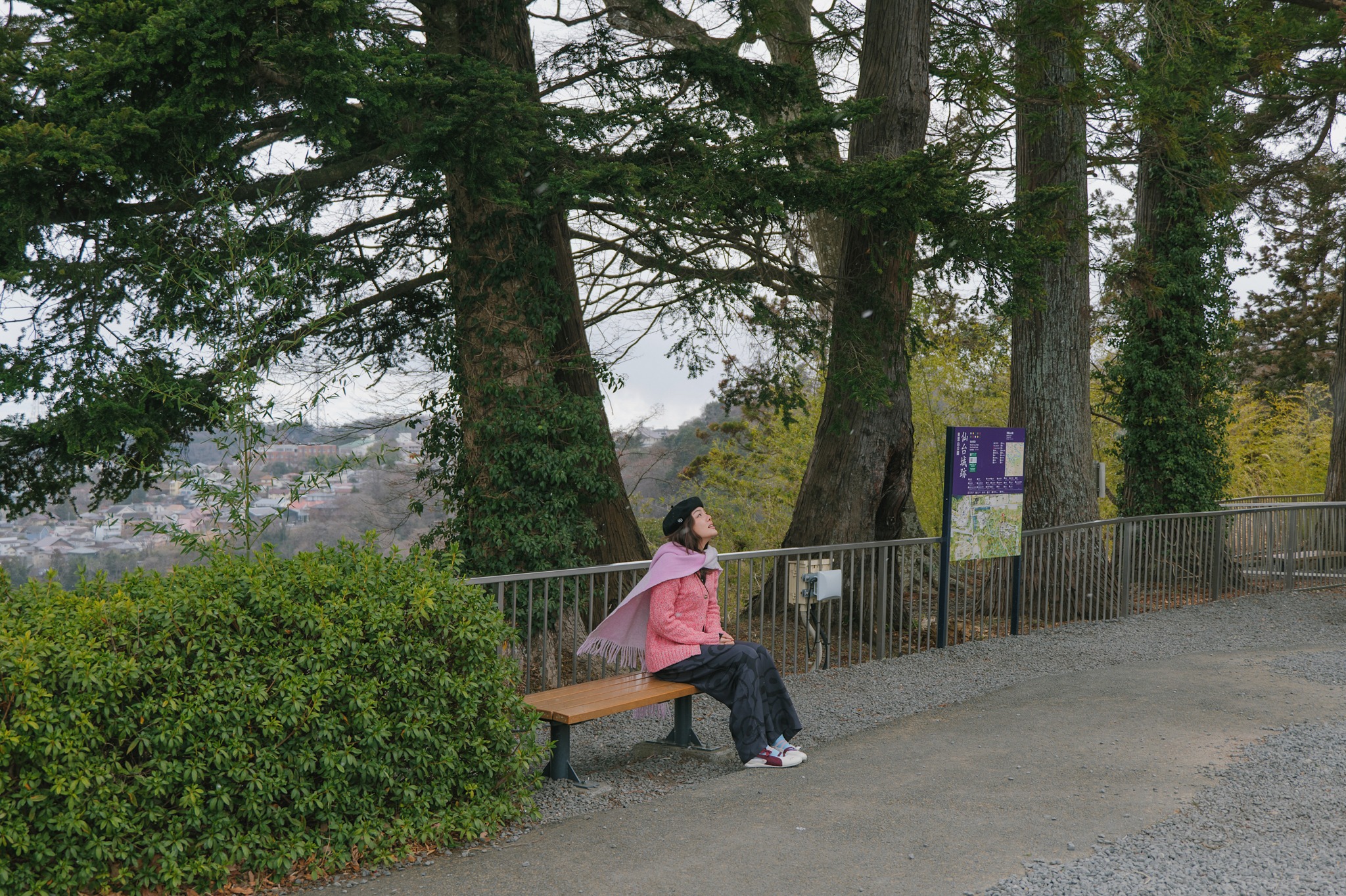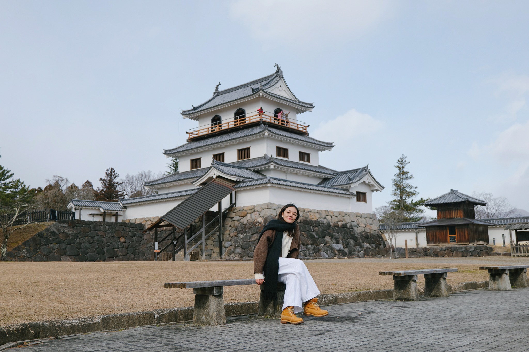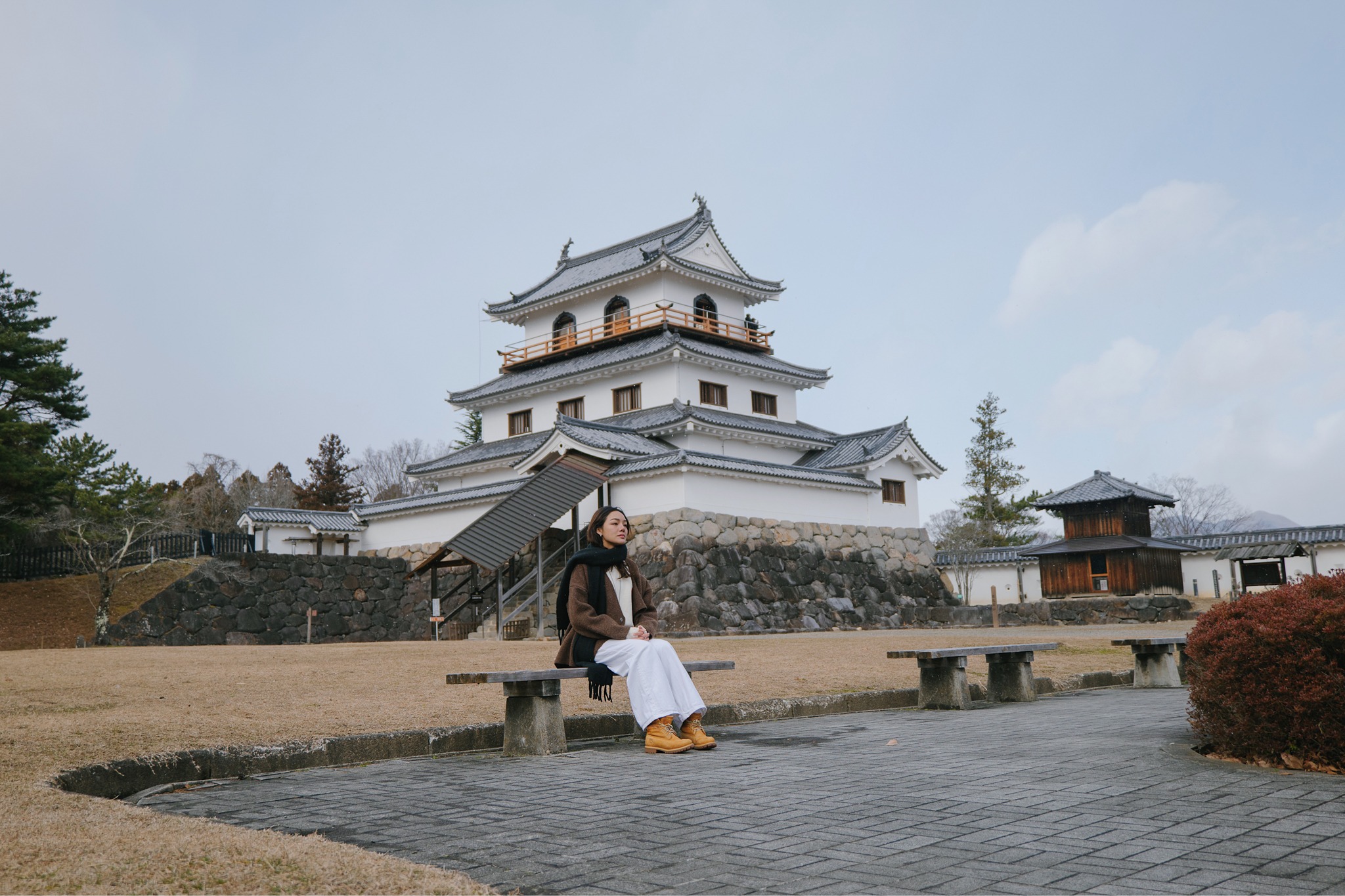 รอบตัวปราสาทถูกจัดเป็นสวนสาธารณะ Masuoka Park ที่ปลูกต้นซากุระกว่า 400 ต้นหลากหลายสายพันธุ์ เช่น Somei Yoshino, Shidarezakura และ Yaezakura จึงเป็นหนึ่งในจุดชมซากุระยอดนิยมของเมืองในฤดูใบไม้ผลิ ส่วนช่วงที่เราไปเยือนยังคงเป็นบรรยากาศหน้าหนาว สวนจะเงียบสงบ โปร่งโล่ง ต้นไม้ผลัดใบเผยให้เห็นเส้นสายของกิ่งก้านตัดกับตัวปราสาทสีขาวแดงอย่างชัดเจน แม้จะไม่มีหิมะปกคลุมหนาเหมือนที่เคยเจอรอบก่อน แต่ความนิ่งและอากาศเย็นก็ช่วยขับให้บรรยากาศดูขรึม สงบ และมีเสน่ห์ไปอีกแบบ ช่วงกลางคืนยังมีการประดับไฟ เพิ่มความอบอุ่นให้โลเคชันแห่งนี้ ที่นี่จึงเป็นพื้นที่ที่ผสานประวัติศาสตร์ วัฒนธรรม และธรรมชาติได้อย่างลงตัว และเป็นมุมถ่ายรูปยอดนิยมของทั้งชาวญี่ปุ่นและนักท่องเที่ยว