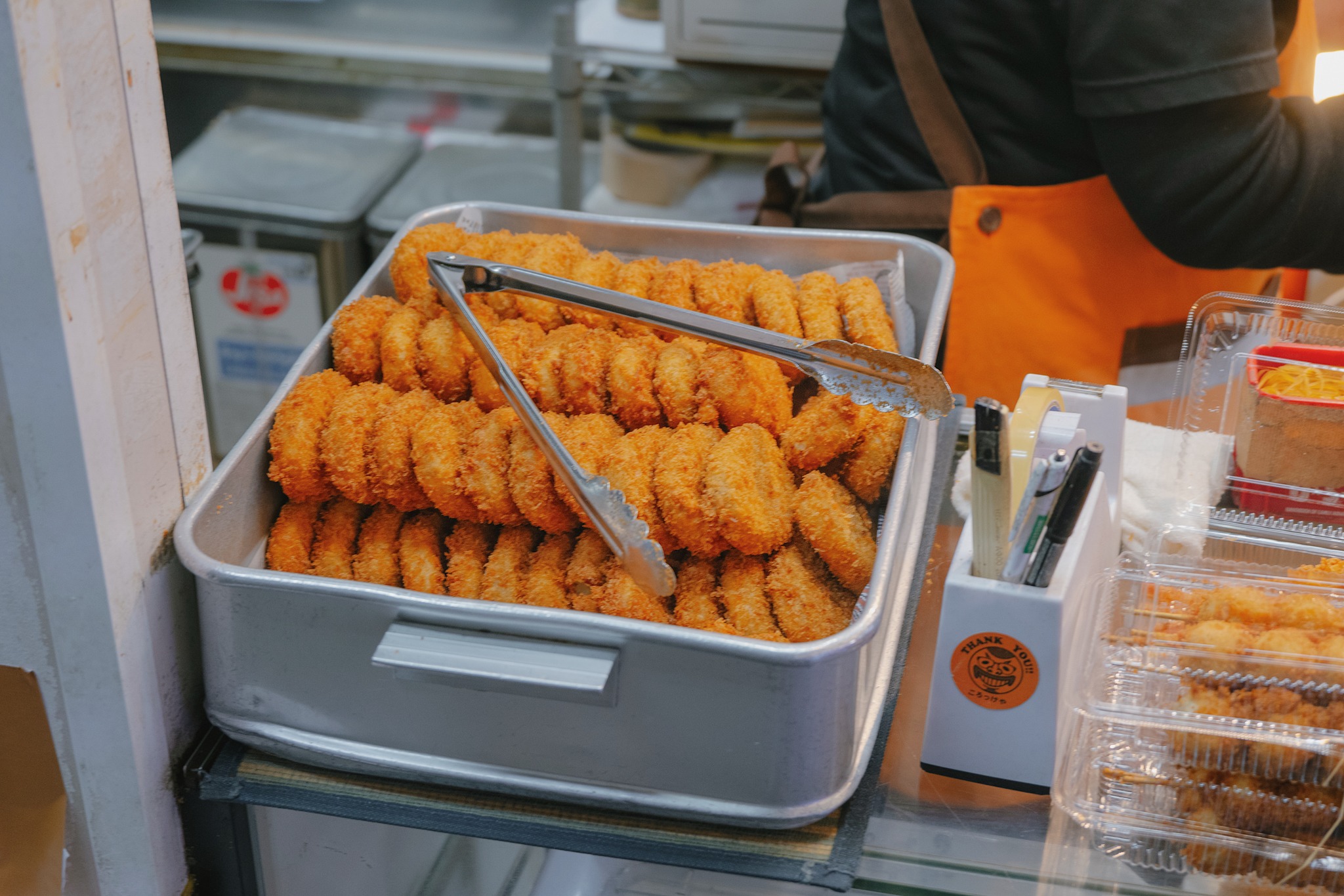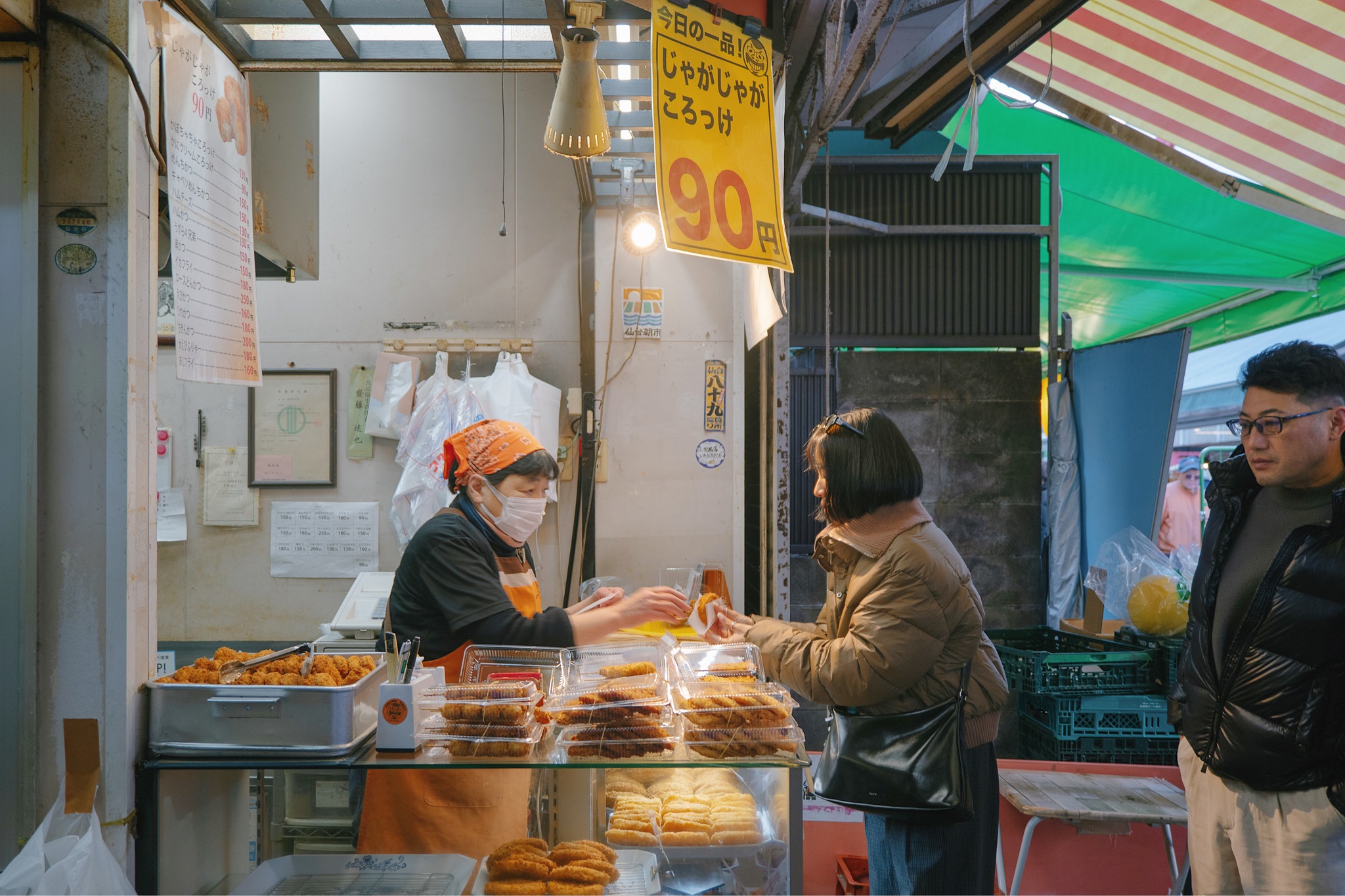 หากเดินเรื่อย ๆ มาตรงกลางตลาด จะเจออีกร้านเด่นประจำ Sendai Asaichi ที่อยากบอกต่ออย่าง Saito Croquettes ร้านทอดเล็ก ๆ ที่สังเกตไม่ยาก เพราะจะมีทั้งคนท้องถิ่นและนักท่องเที่ยวยืนต่อคิวยาวเป็นหางว่าวตลอดเวลา ร้านนี้ขายของทอดหลากหลายเมนู โดยเมนูที่เราลองและถือเป็นซิกเนเจอร์ของร้านคือ มันบดชุบแป้งทอด (Croquette) แป้งเกล็ดขนมปังกรอบกำลังดี ไม่บาดปาก ไม่อมน้ำมัน และไม่มีกลิ่นหืน ยิ่งได้กินตอนทอดเสร็จใหม่ ๆ คืออร่อยแบบหยุดไม่ได้ ไส้ก็มีให้เลือกหลากหลาย ทั้งเนื้อ แฮม ชีส กุ้ง ไปจนถึงไส้ ซุนดะ (ถั่วแระบด) สมกับเป็นเมืองที่รักถั่วแระจริง ๆ ราคาก็น่ารักมาก เริ่มตั้งแต่ประมาณ 70 – 250 เยน เป็นของกินเล่นระหว่างเดินตลาดที่ควรค่าแก่การต่อคิวจริง ๆ