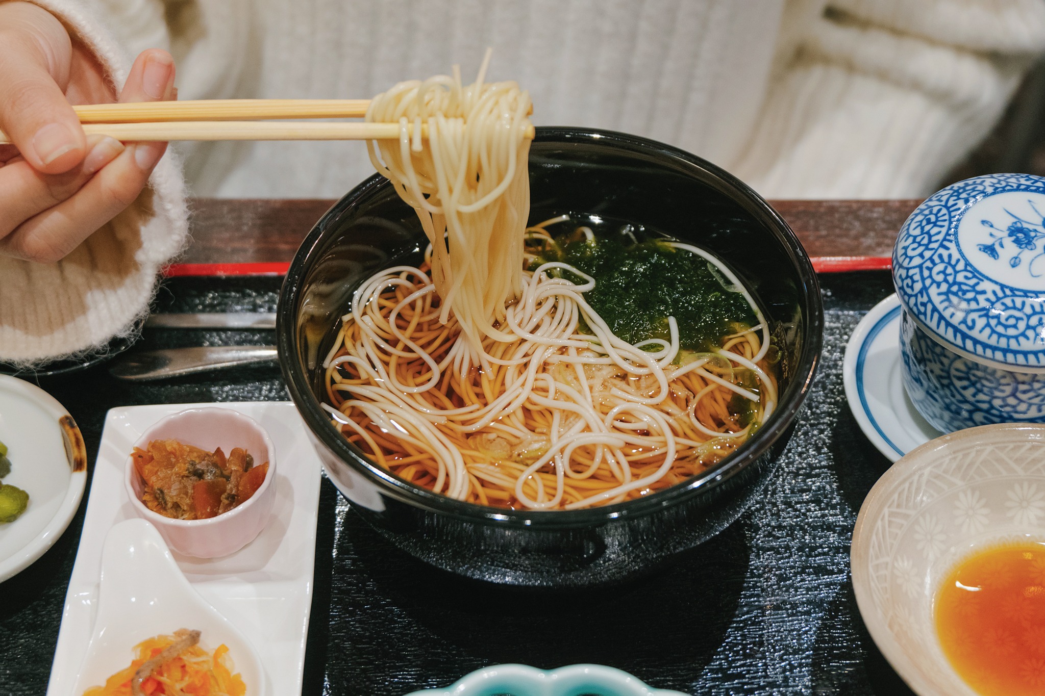ทริปนี้เราเริ่มต้นกันที่เมือง Shiroishi ด้วยการพาทุกคนทำความรู้จักเมืองนี้ผ่านรสชาติ ใช่แล้ว เรากำลังจะพาทุกคนไปทานมื้อเที่ยงแรกกันที่ Japanese Restaurant ห้องอาหารภายในโรงแรม VENEZIAN HOTELS SHIROISHI ZAO ท่ามกลางบรรยากาศด้านนอกที่ขาวโพลนไปด้วยหิมะ แต่พอเปิดประตูเข้ามาด้านในกลับให้ฟีลอบอุ่นแบบตรงข้ามทันที แสงไฟสีส้ม เฟอร์นิเจอร์ไม้ และที่นั่งเรียงรายริมหน้าต่างคือปังตั้งแต่ก้าวแรก ส่วนเซ็ตอาหารญี่ปุ่นที่เสิร์ฟมาเป็นถาดจัดเรียงอย่างสวยงาม มีทั้งเครื่องเคียง เทมปุระ และซาชิมิสดใหม่ หน้าตาดีจึ้งแบบเห็นแล้วอยากหยิบกล้องขึ้นมาก่อนช้อน โดยในเซ็ตมีพระเอกของมื้อคือ “Shiroishi Umen” บะหมี่ร้อนเส้นบางนุ่ม ซุปรสใสกลมกล่อม ซึ่งเป็นอาหารขึ้นชื่อของเมืองนี้และมีประวัติยาวนานกว่า 400 ปี เรื่องเล่าความกตัญญูของพระภิกษุที่ทำบะหมี่ไร้น้ำมันเพื่อดูแลสุขภาพบิดามารดาทำให้เมนูนี้ยิ่งจึ้งเข้าไปอีก มื้อแรกของทริปจึงไม่ใช่แค่อิ่มท้อง แต่เป็นการเริ่มต้นที่ได้ทั้งรสชาติ เรื่องราว และบรรยากาศของเมืองแบบค่อย ๆ ซึมเข้าใจไปพร้อมกัน
