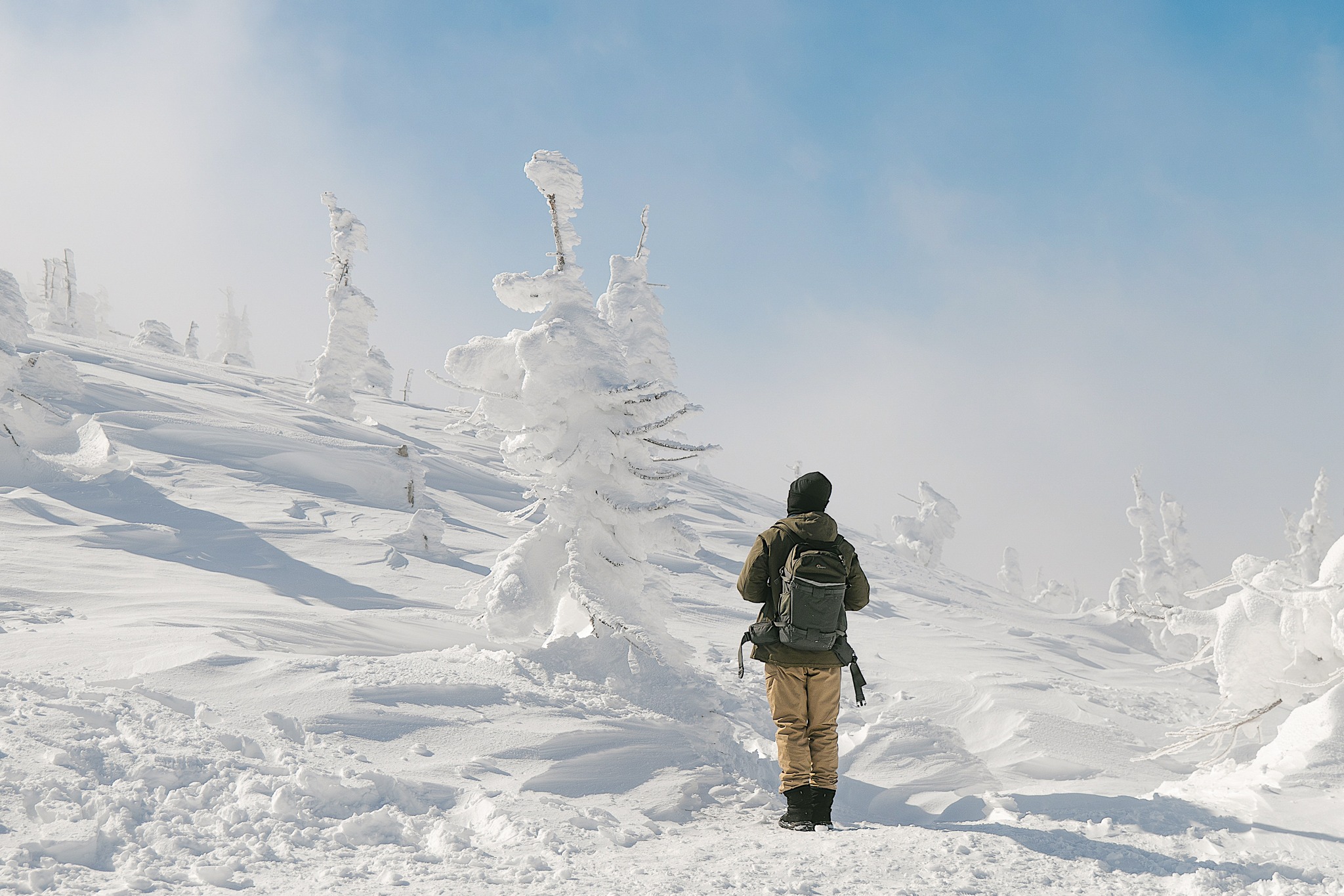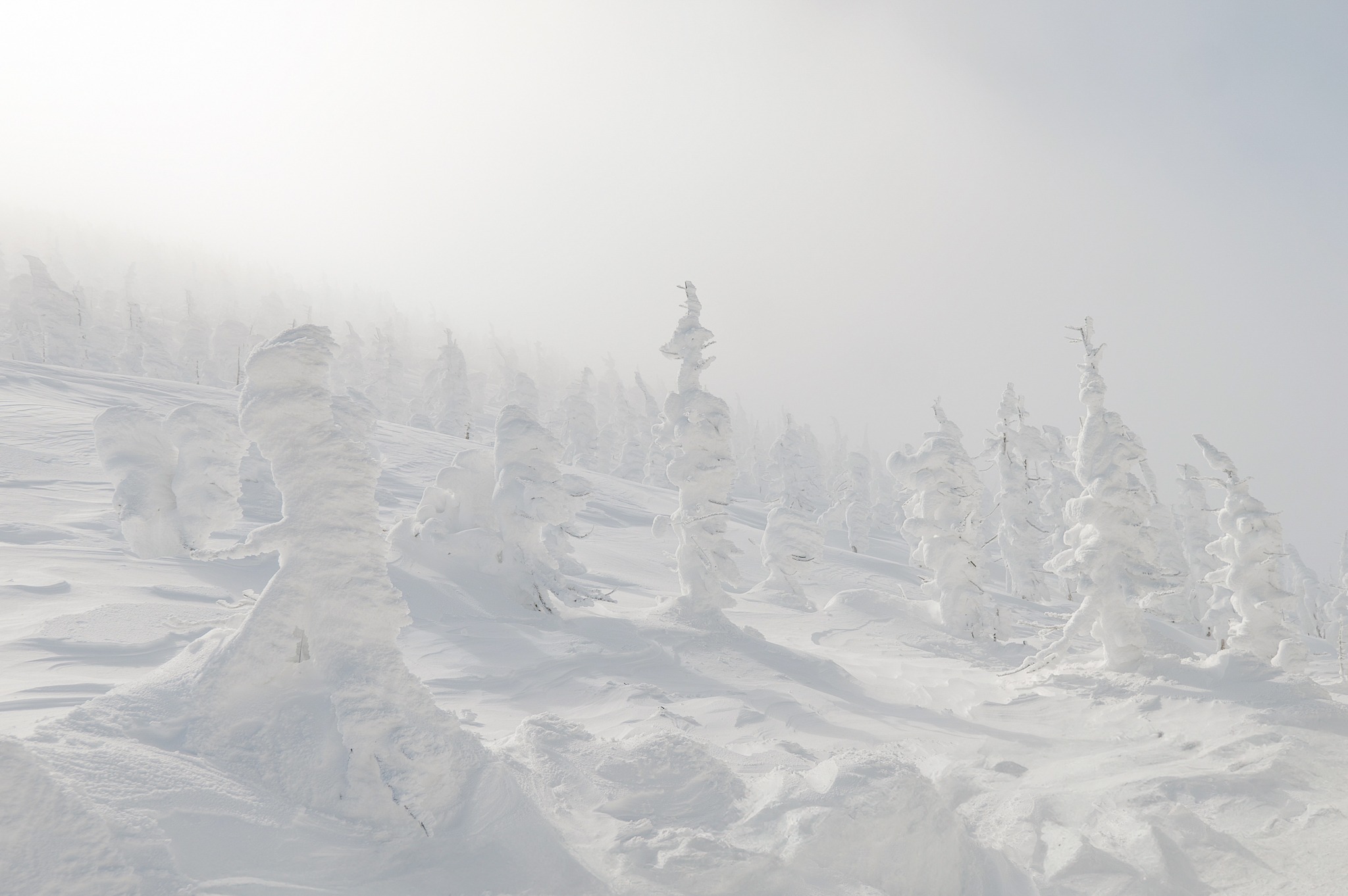 และเมื่อขึ้นมาถึงด้านบน สิ่งที่รออยู่ก็คือ Snow Monster หรือ Juhyo ปรากฏการณ์ธรรมชาติที่ต้นสนถูกลมแรงและหิมะพอกทับซ้ำ ๆ จนกลายเป็นรูปร่างแปลกตาคล้ายสัตว์ประหลาดสีขาว เรียงรายเต็มแนวเขา การได้ยืนอยู่ท่ามกลาง Snow Monster ของจริง ทำให้เข้าใจทันทีว่าทำไมที่นี่ถึงเป็นหนึ่งในจุดชม Snow Monster ฝั่งมิยางิที่หลายคนอยากมาให้ได้สักครั้ง ภาพตรงหน้าทั้งอลังการ เงียบสงบ และให้ความรู้สึกเหมือนอยู่ในโลกอีกใบ เป็นช่วงเวลาที่แค่ยืนมอง สูดอากาศเย็น ๆ แล้วปล่อยให้วิวทำงานของมัน ก็รู้สึกคุ้มกับการเดินทางขึ้นมาแล้วจริง ๆ