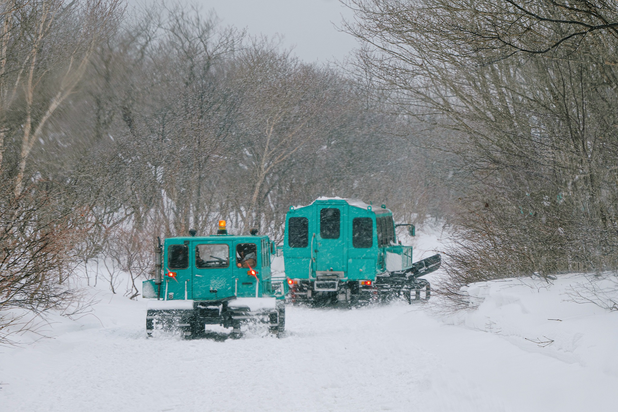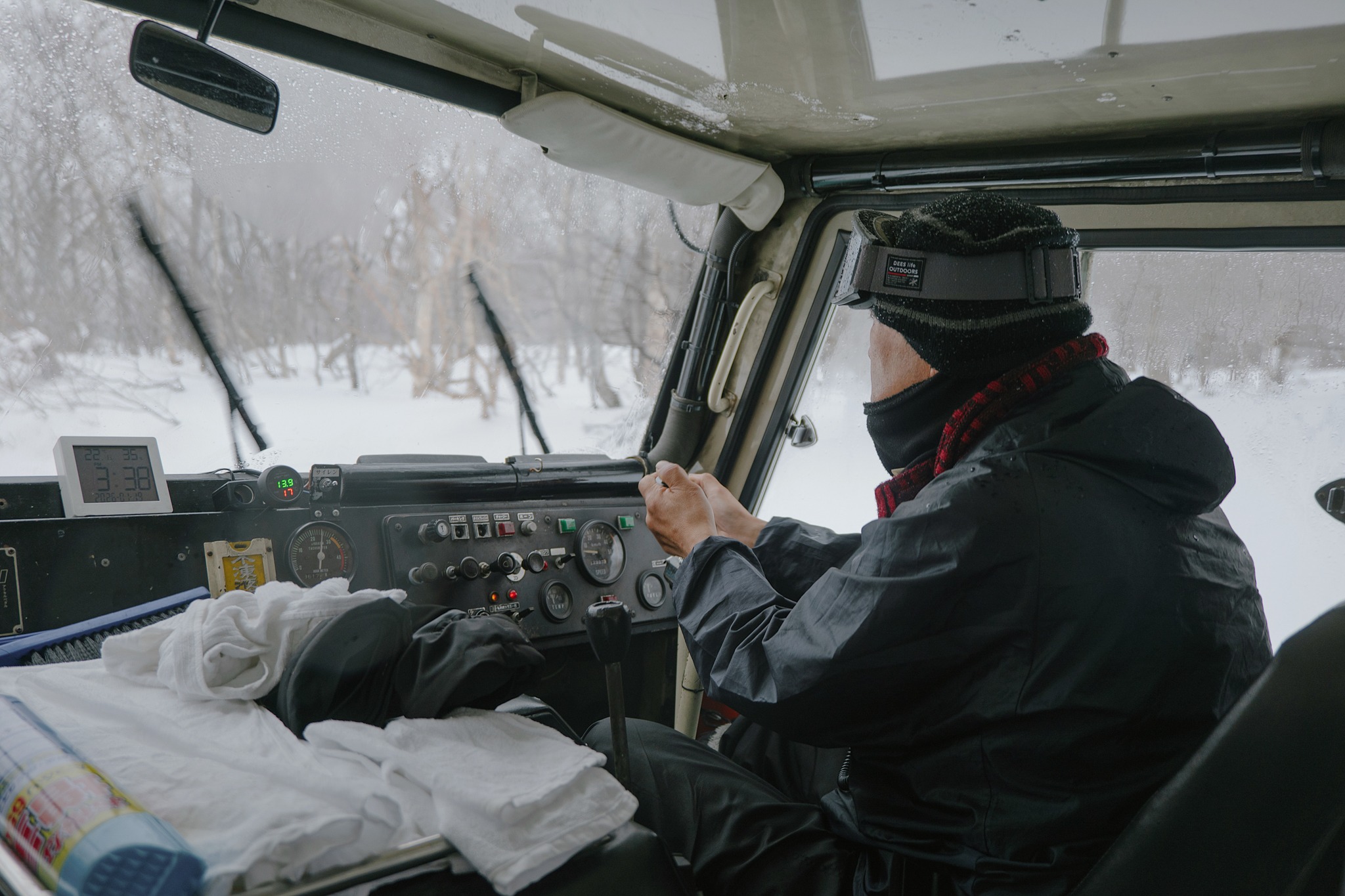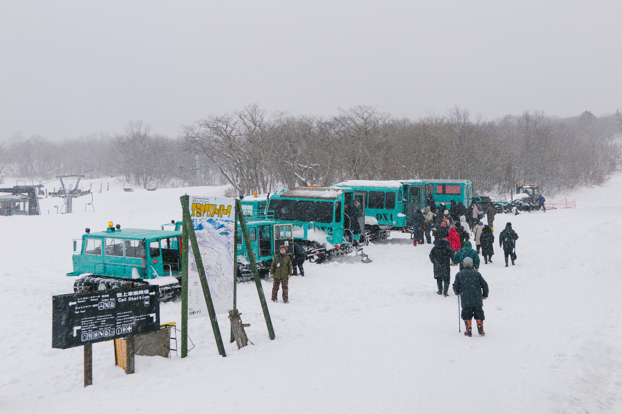 แน่นอนว่าหนึ่งในไฮไลต์ที่ทำให้เราตั้งใจมาที่นี่คือการนั่ง รถตีนตะขาบ (Snowcat) เพื่อขึ้นไปบนยอดเขาซาโอะฝั่งมิยางิ โดยรถจะออกเป็นรอบตามช่วงเวลาที่กำหนด ค่อย ๆ ไต่ระดับฝ่าหิมะหนานุ่มเข้าไปในป่าสนสองข้างทาง ระหว่างทางบรรยากาศเงียบสงบ มีแค่เสียงเครื่องยนต์เบา ๆ ตัดกับวิวต้นไม้ที่ถูกหิมะเกาะจนขาวโพลน ยิ่งรถไต่สูงขึ้น อากาศก็ยิ่งเย็นจัด วิวเริ่มเปิดกว้างขึ้นเรื่อย ๆ ให้ฟีลทั้งตื่นเต้นและผ่อนคลายไปพร้อมกัน เหมือนกำลังค่อย ๆ หลุดออกจากโลกเดิมเข้าสู่ดินแดนฤดูหนาวแบบเต็มตัว